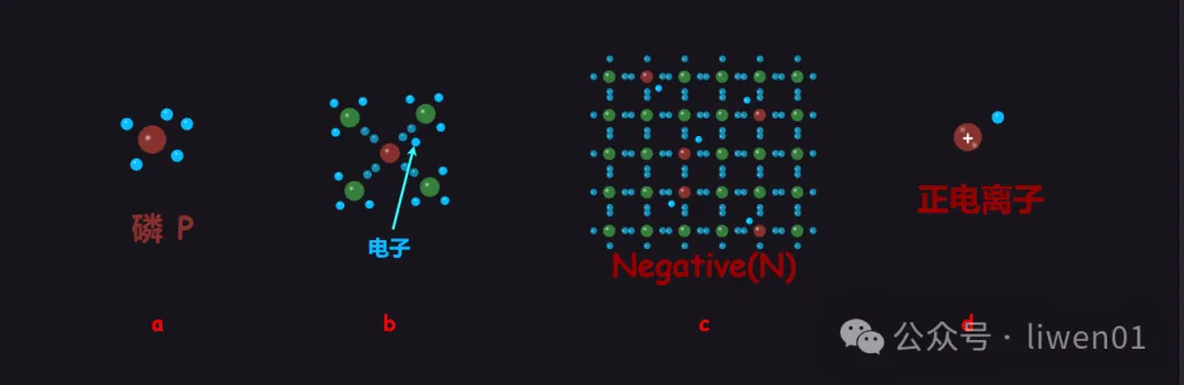 磷是15号元素,最外层有5个电子。 在本征硅中掺入少量的磷,就得到了Negative(N)型半导体。