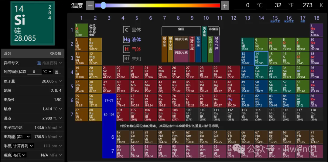 硅是元素周期表中的第14号元素,被划分为类金属。