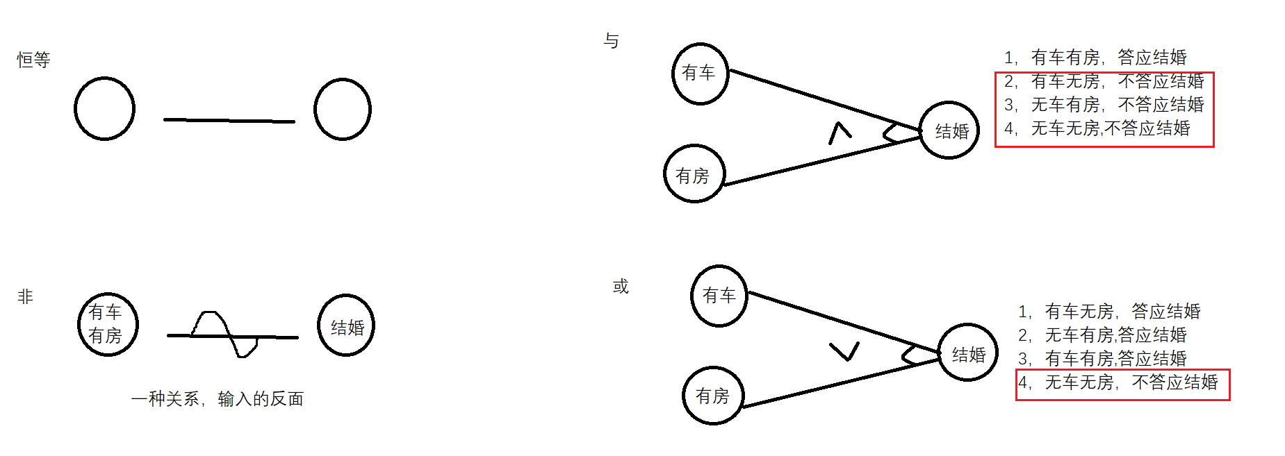 条件项:列出条件对应的取值,所有可能条件下的真假值