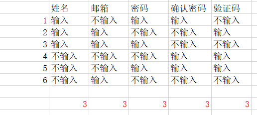 例子:姓名,邮箱,密码,确认密码,验证码(输入和不输入)——不用正交表要列出2^5=32情况