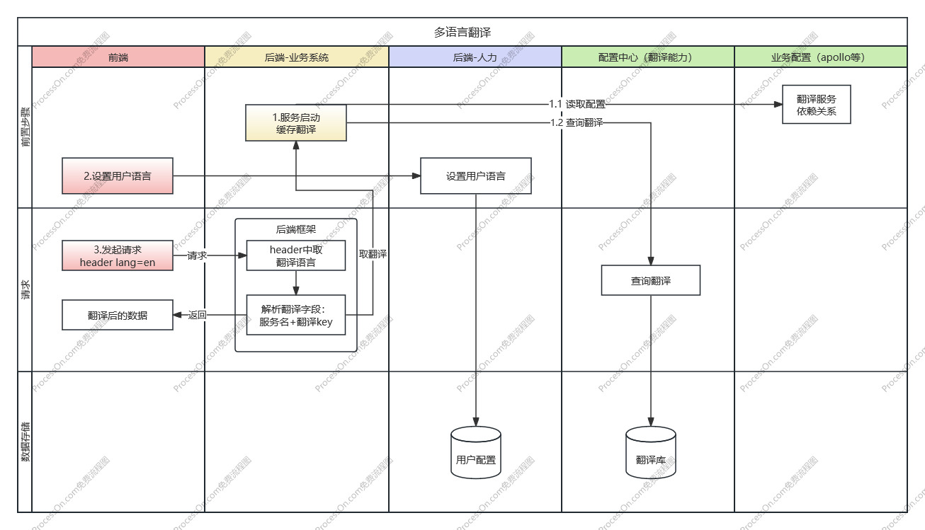 2)后端框架:读取请求头中的语言+服务名+翻译key,从缓存中获取翻译值。