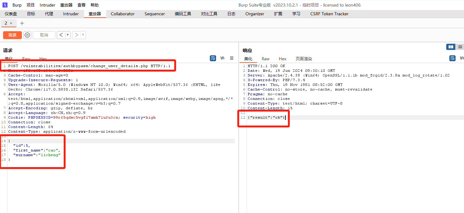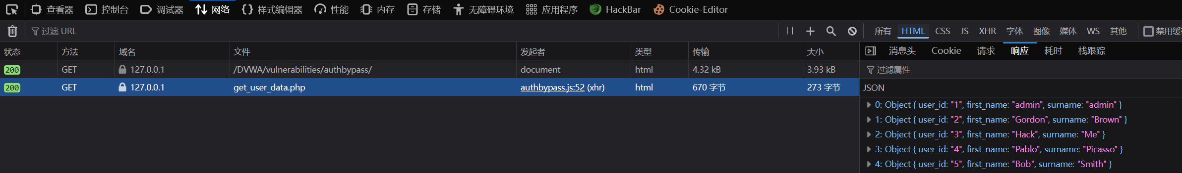 想到刚才网络资源里泄露的信息,访问vulnerabilities/authbypass/get_user_data.php
