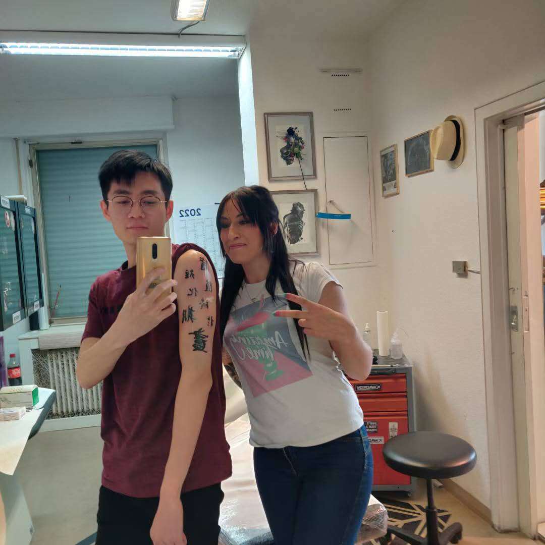 最后,我还偷偷做了一个大臂纹身,回国才敢告诉父母。