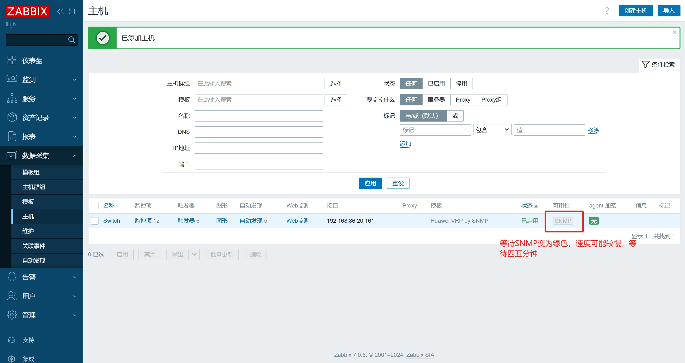 一台华为交换机,本次监控的就是该交换机的端口流量(192.168.86.20)
