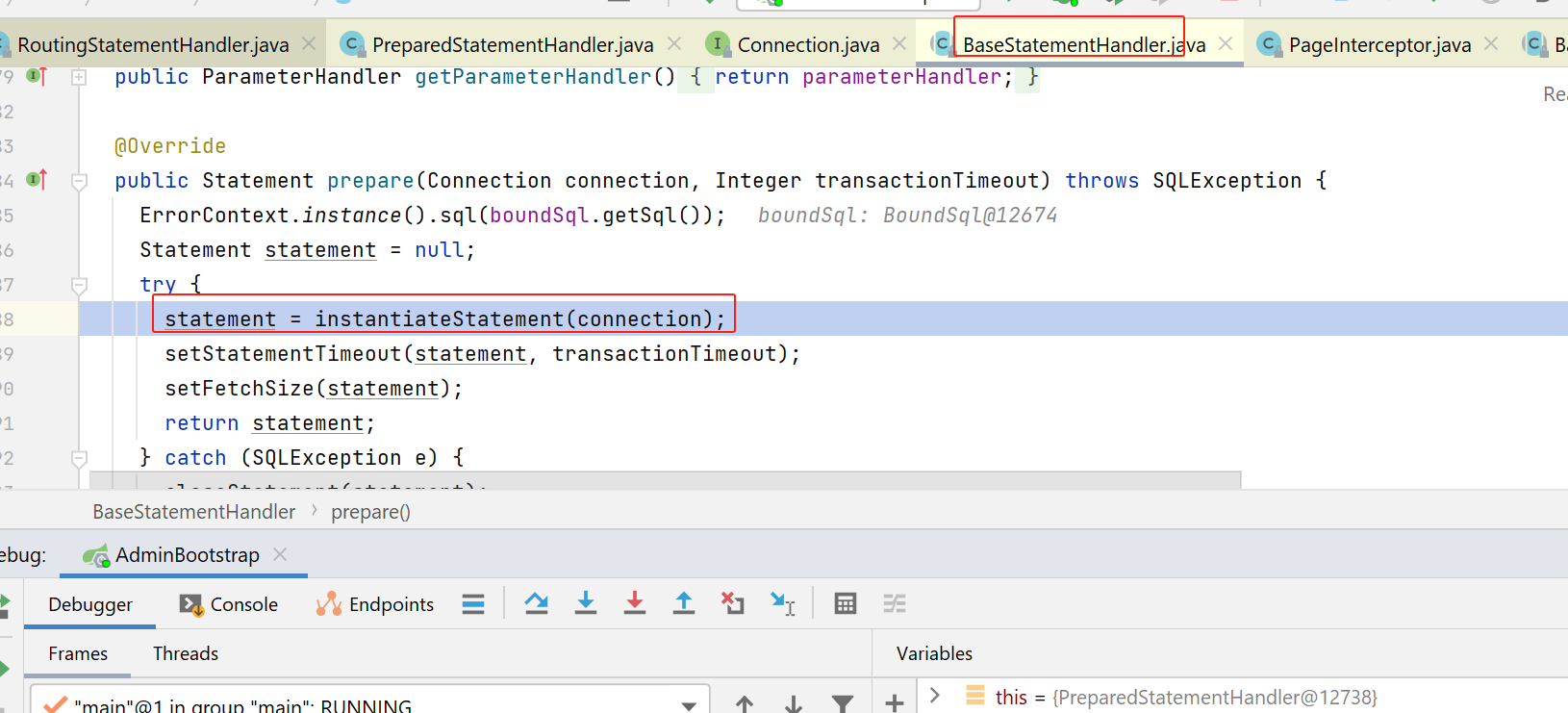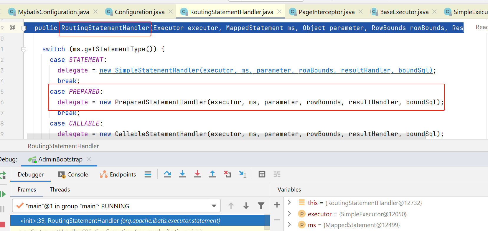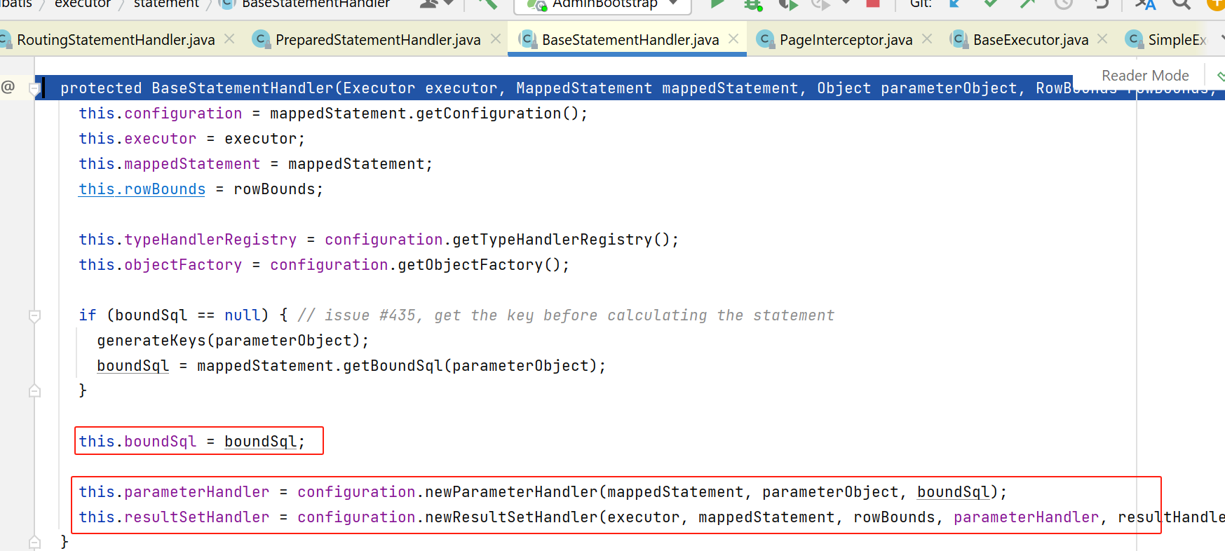 在上图,在创建PreparedStatementHandler时,先创建父类BaseStatementHandler.