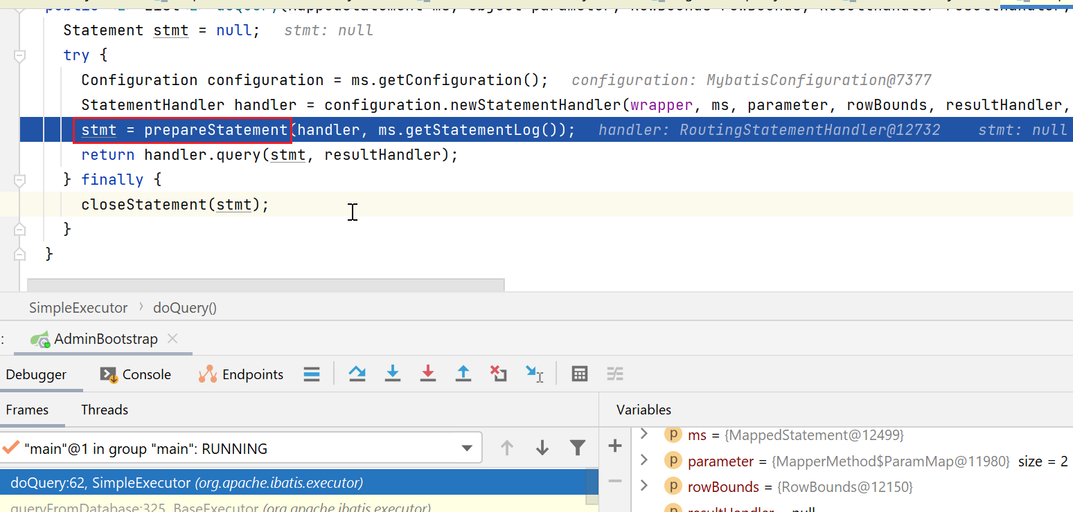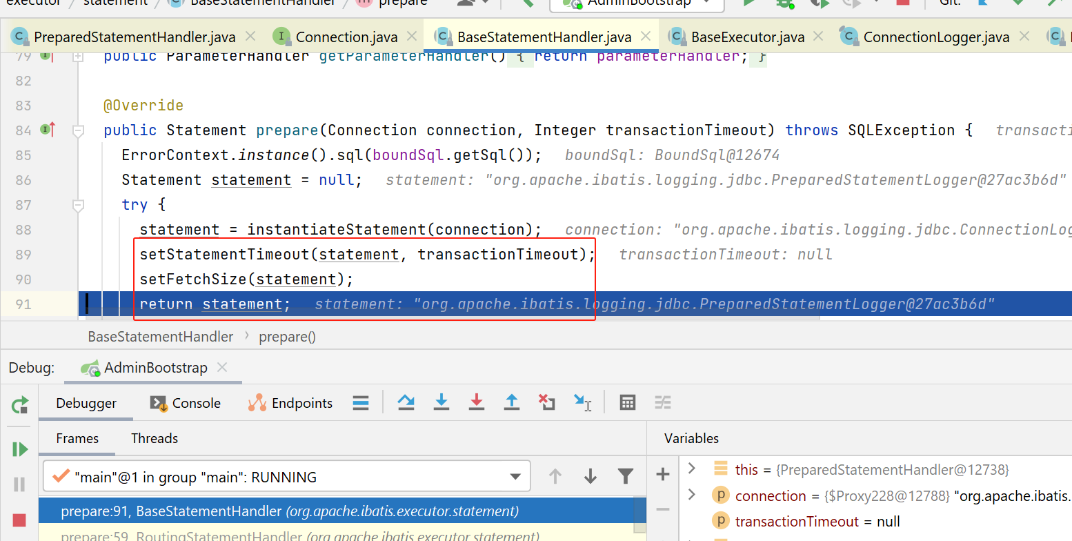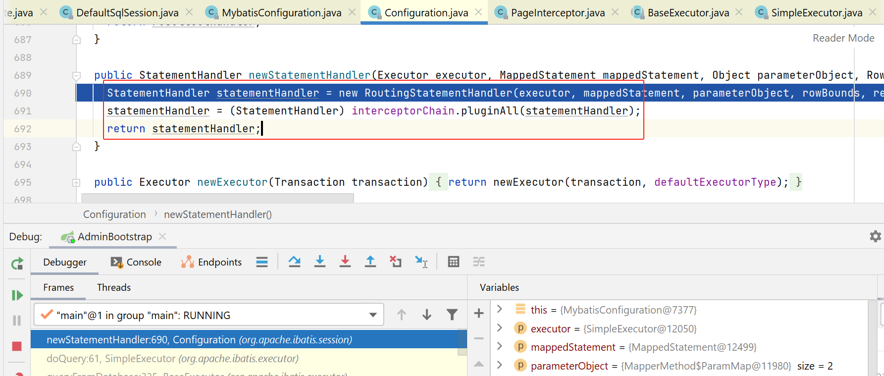 在上图,在创建PreparedStatementHandler时,先创建父类BaseStatementHandler.