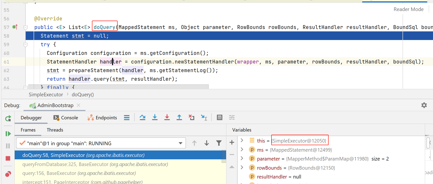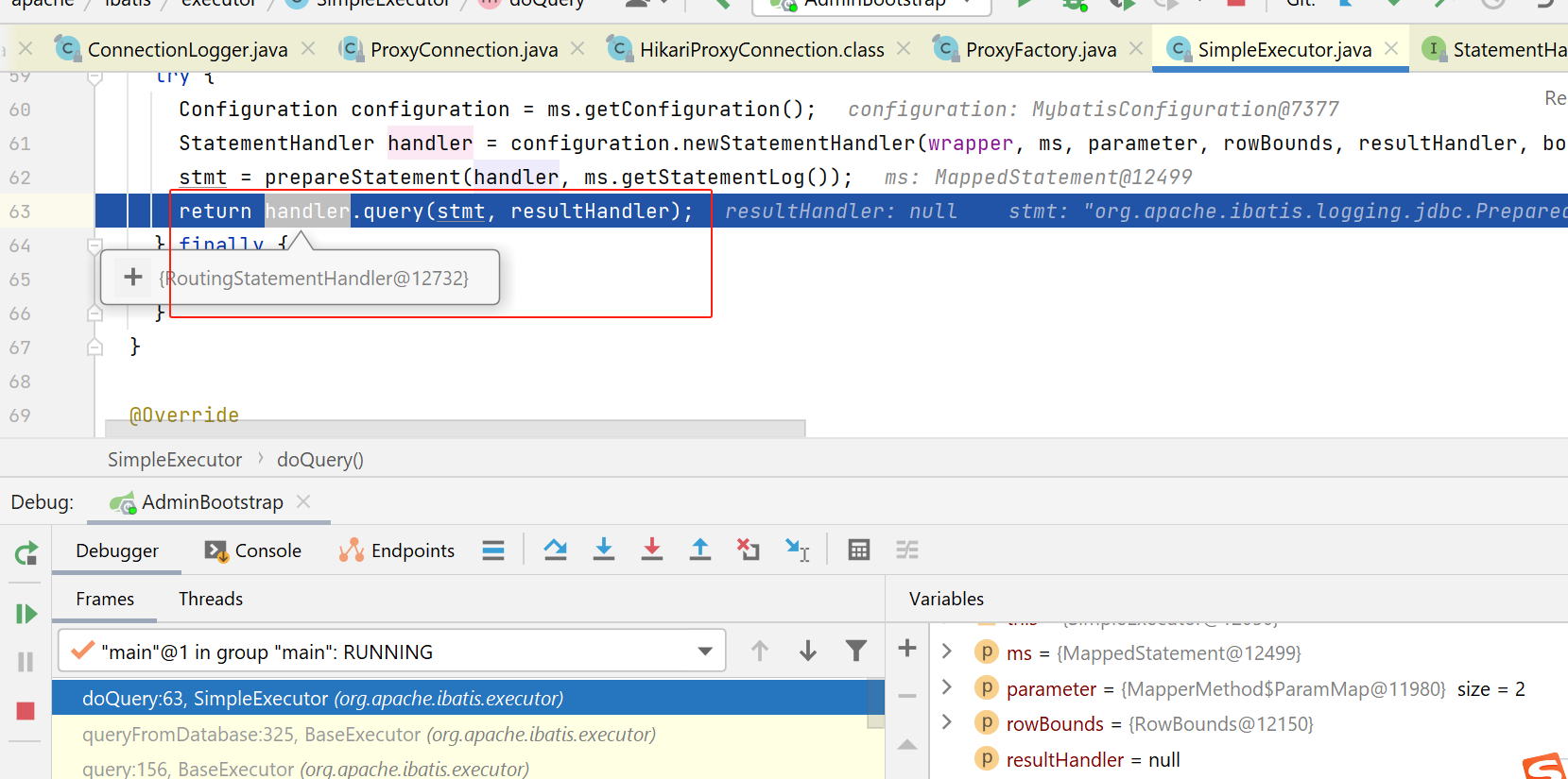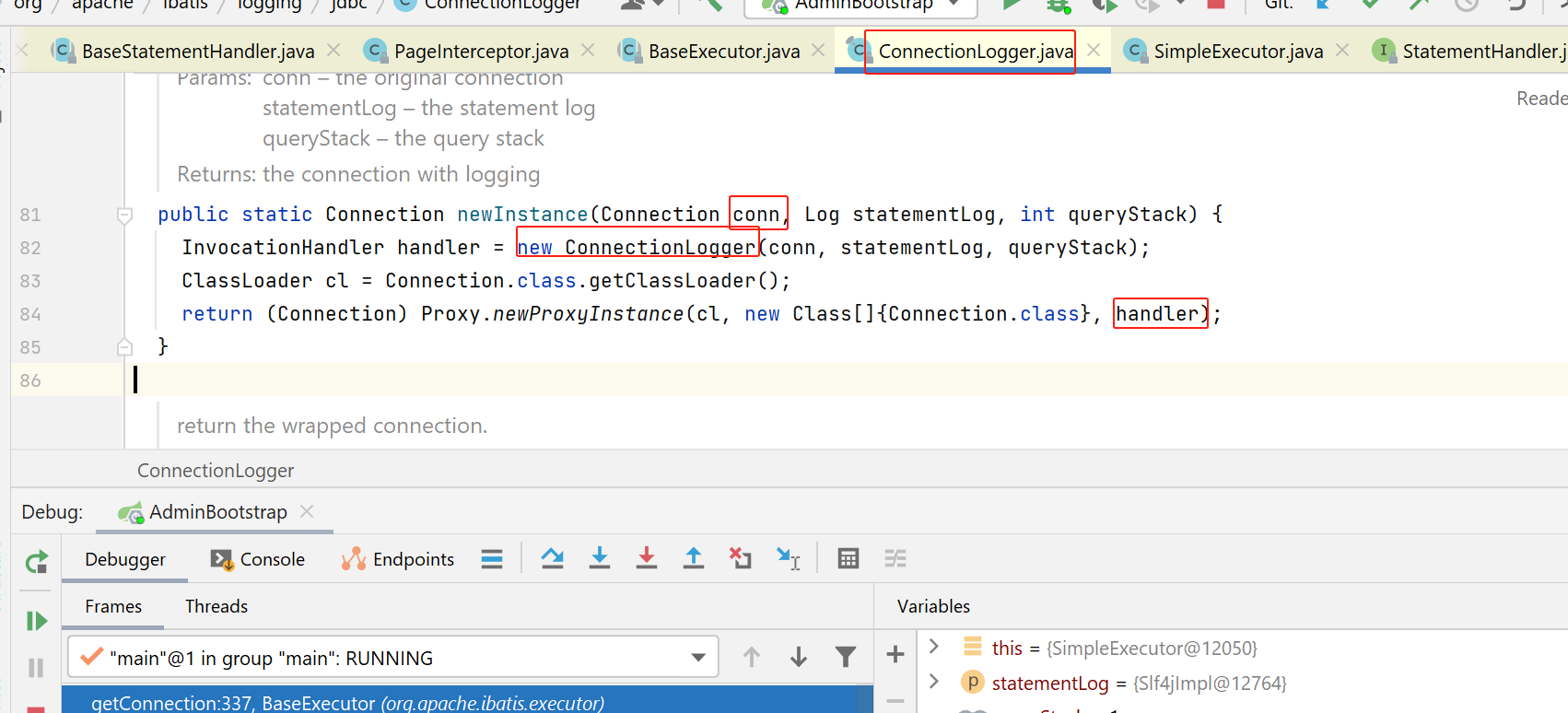 我们这里只有一个拦截器,就是分页的拦截器,target就是我们传入的SimpleExecutor。