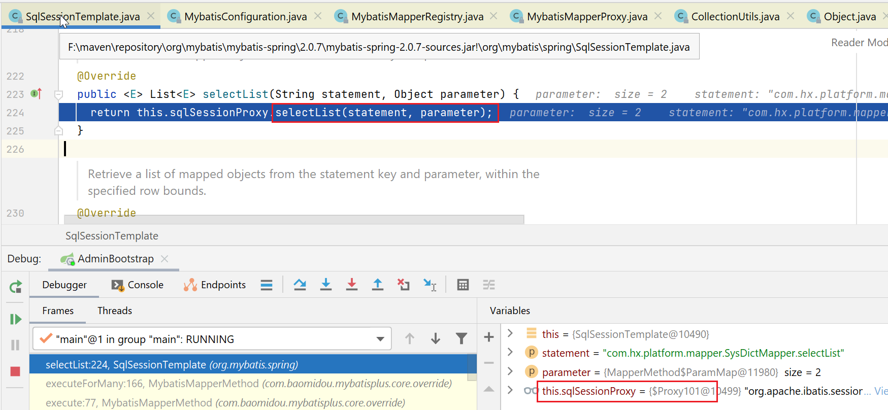 接下来,会交给spring的sqlSessionTemplate来执行: