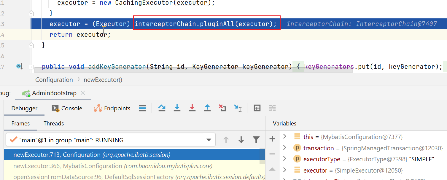 executor = (Executor) interceptorChain.pluginAll(executor);