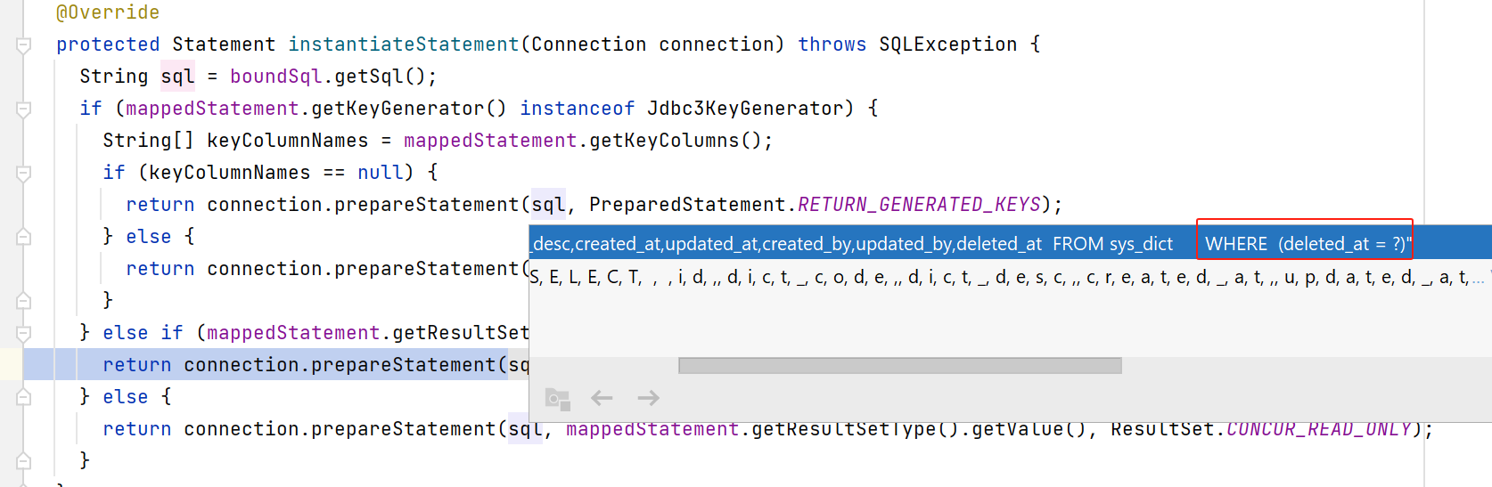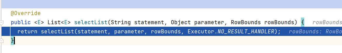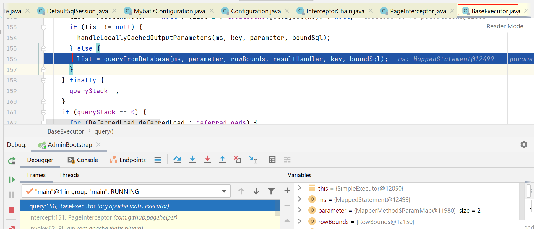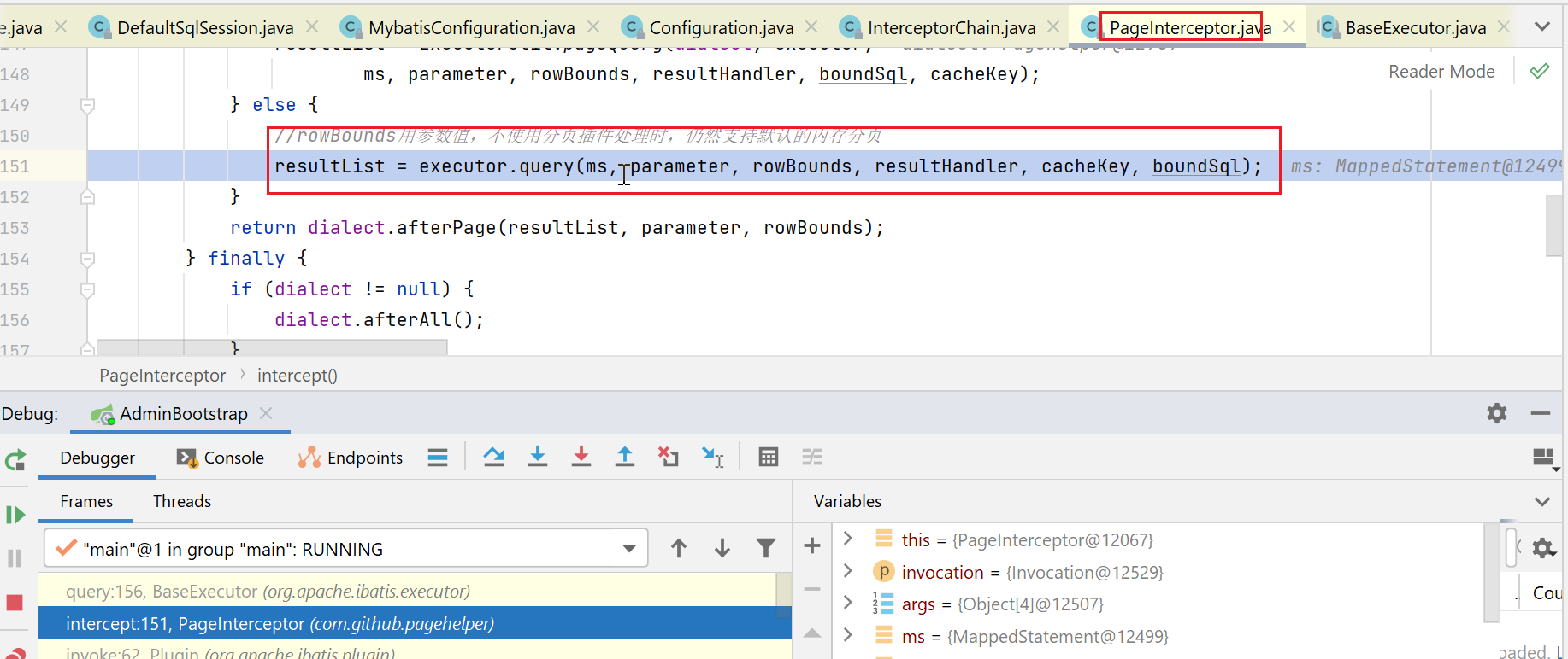 我这边,会被分页拦截器拦截住,就执行到了如下代码: