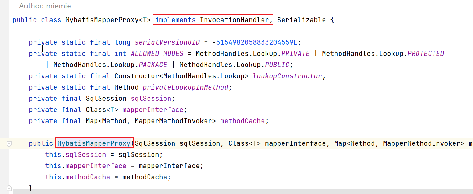 构造了一个MybatisMapperProxy类型的对象,该对象是实现了jdk的动态代理的:
