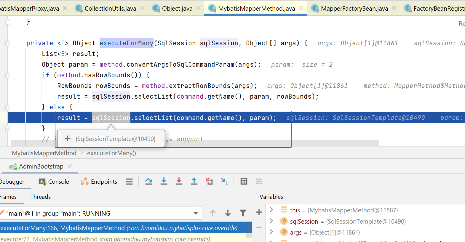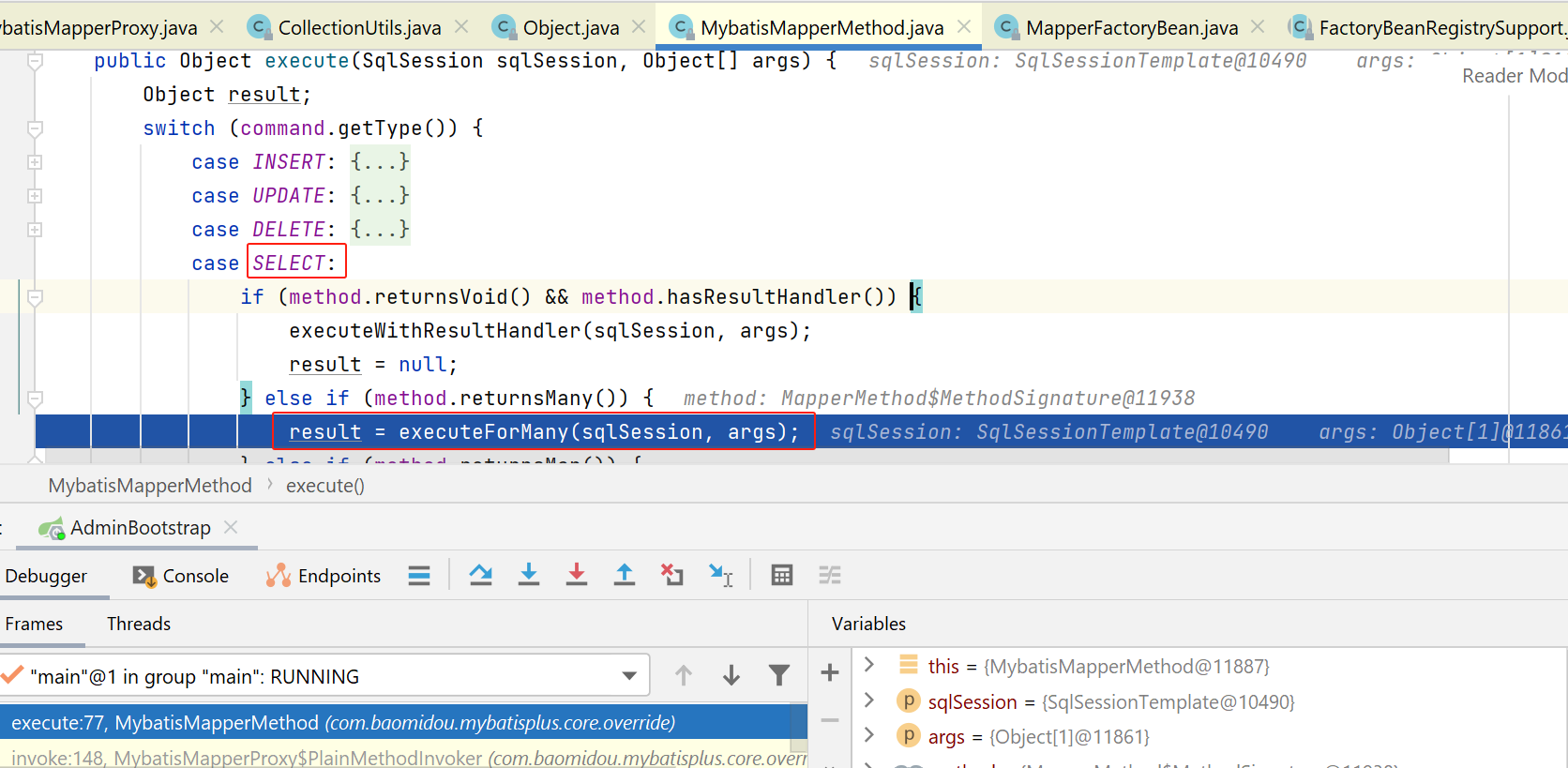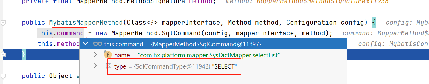 以下图举例,这里会执行一个sysDictMapper.selectList方法:
