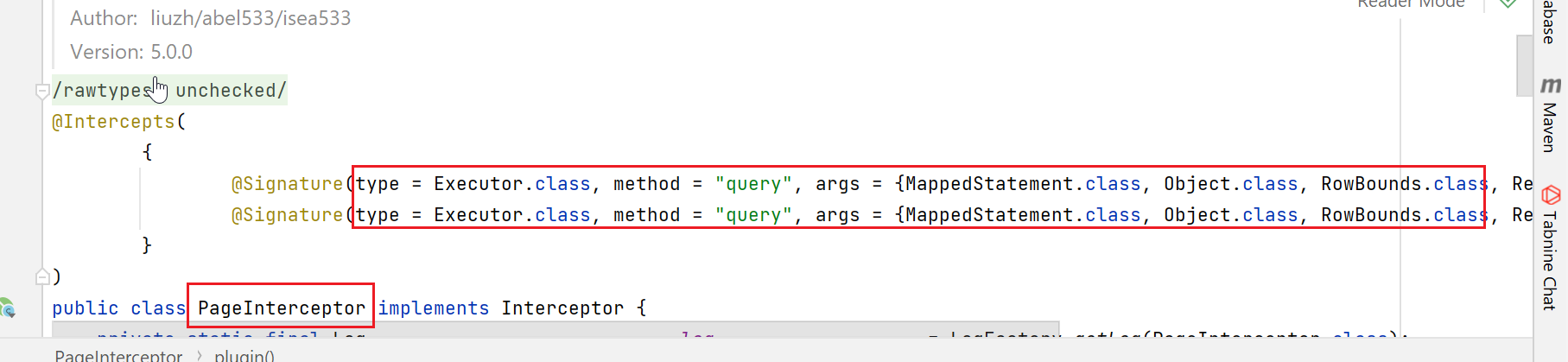 我们看看分页插件的代码中怎么定义的,看看是拦截了哪些方法: