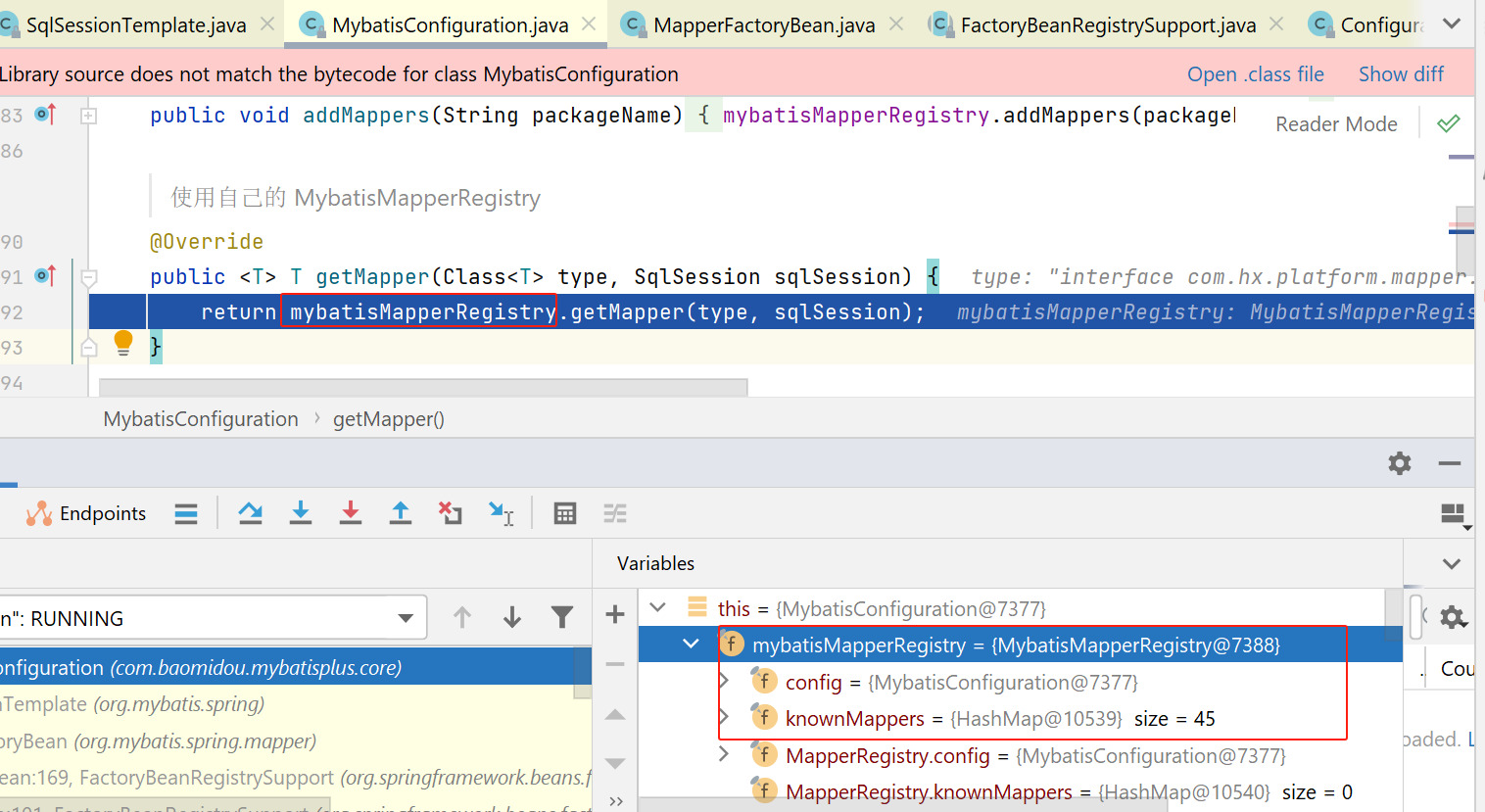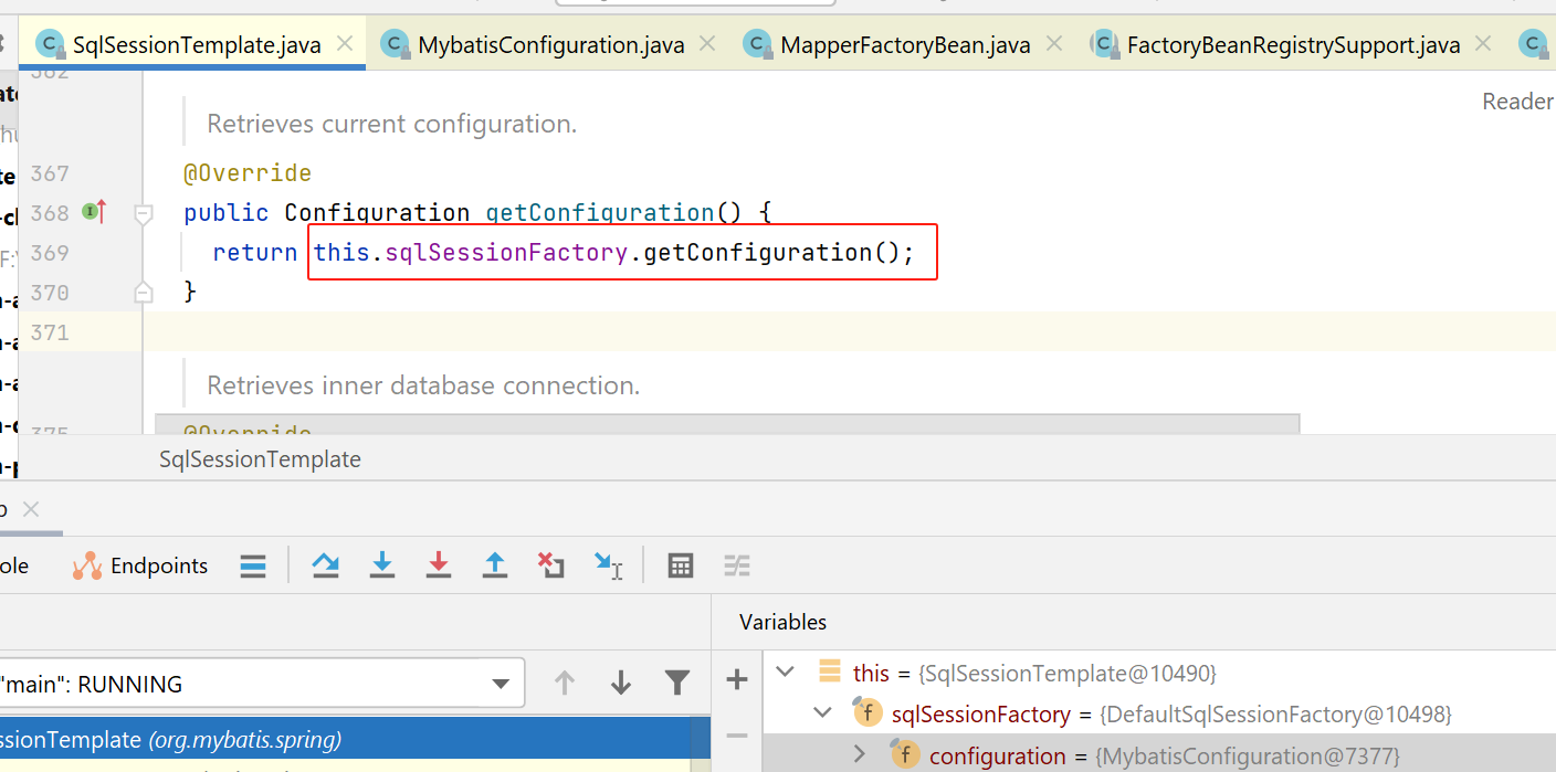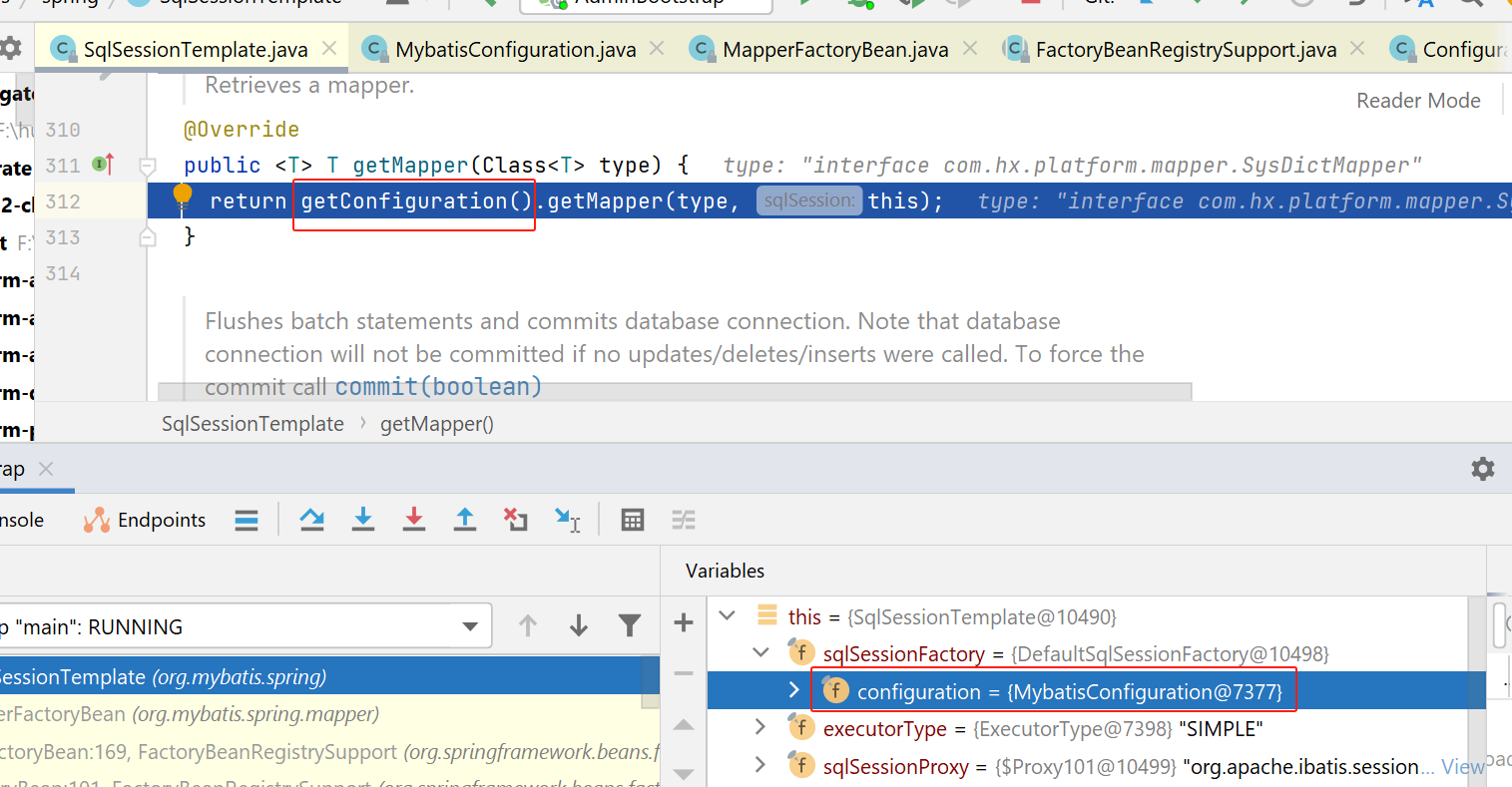 这里会先获取org.apache.ibatis.session.Configuration类型对象,然后从这个configuration中获取Mapper。