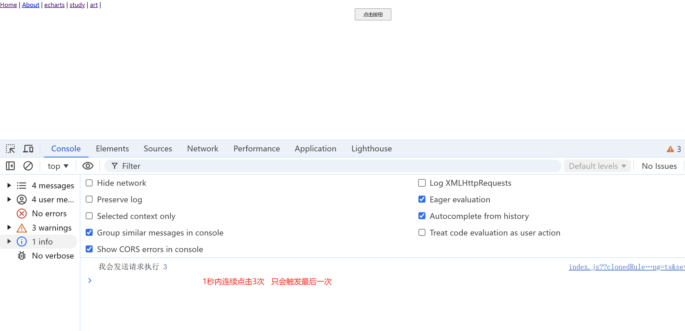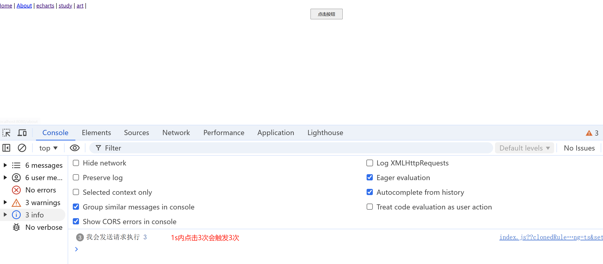 点击按钮3次,就会发送3次请求。