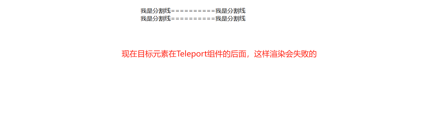 // 现在目标元素在Teleport组件的后面,这样渲染会失败的