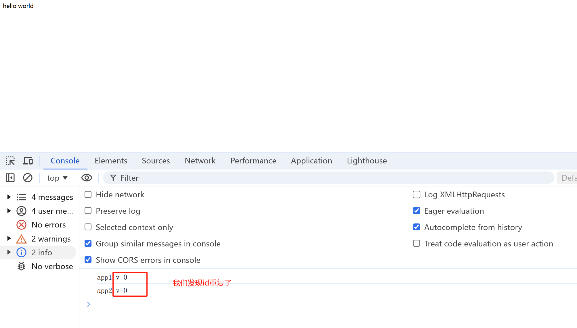 唯一性的前提是:必须在同一个createApp中才是唯一的,如果项目中有多个createApp,那么id就重复了。
