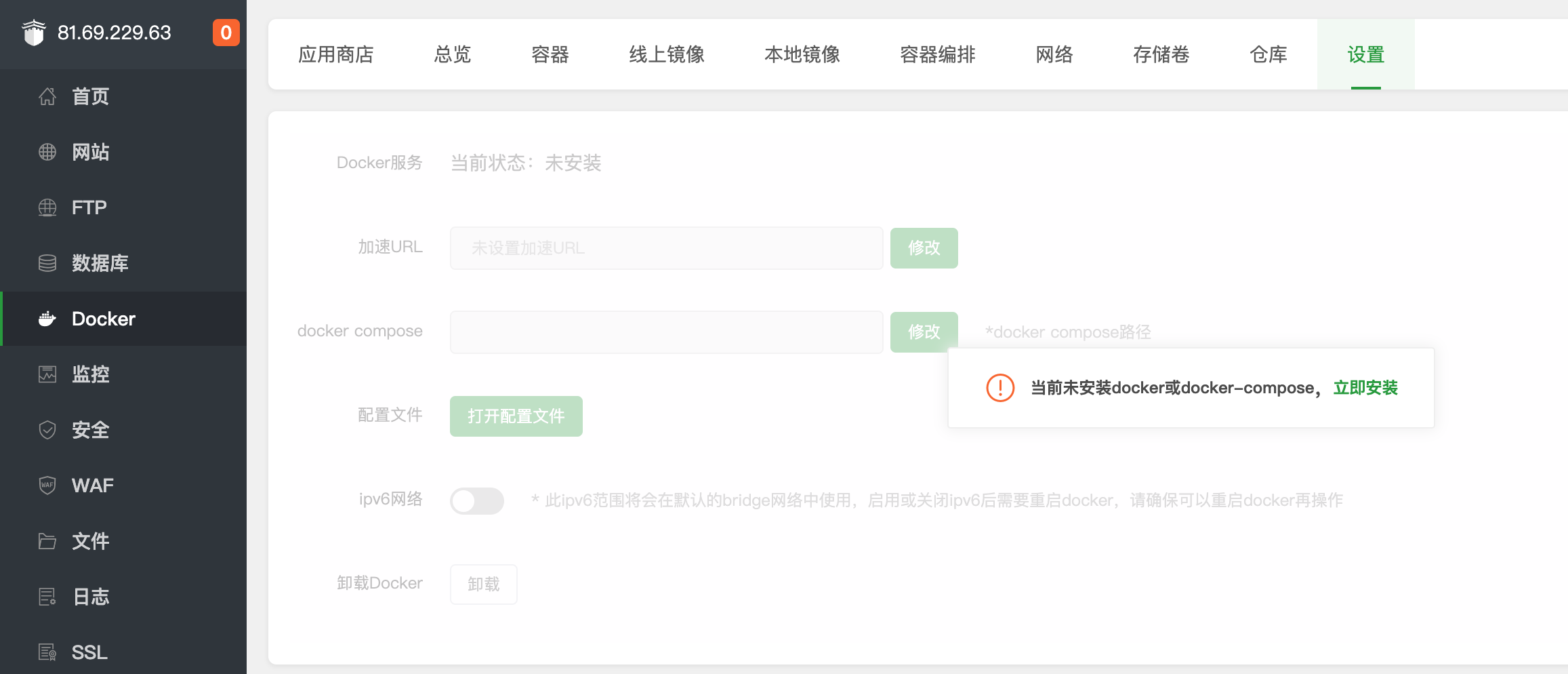 有了配置文件后,就可以利用宝塔面板自带的 Docker 能力,去进行项目的部署了,感兴趣的同学可以尝试一下: