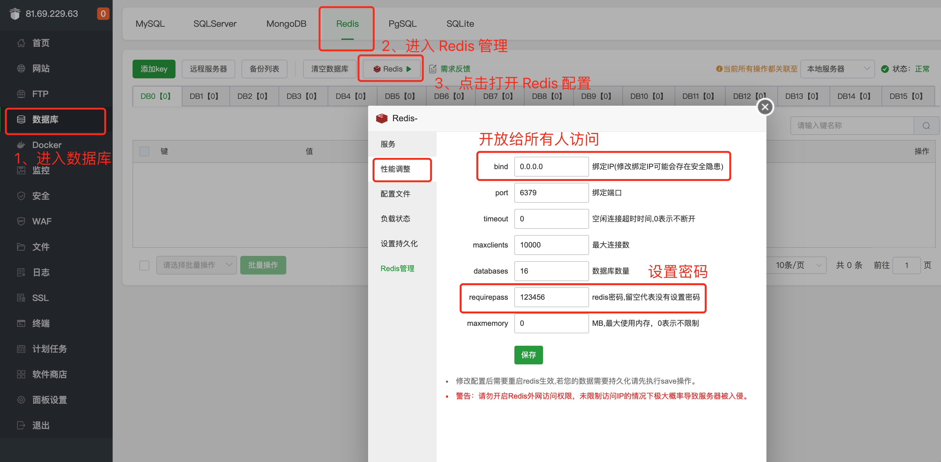 安装完成后,需要配置 Redis,开启远程访问并配置密码,否则我们自己的电脑是无法连接 Redis 的: