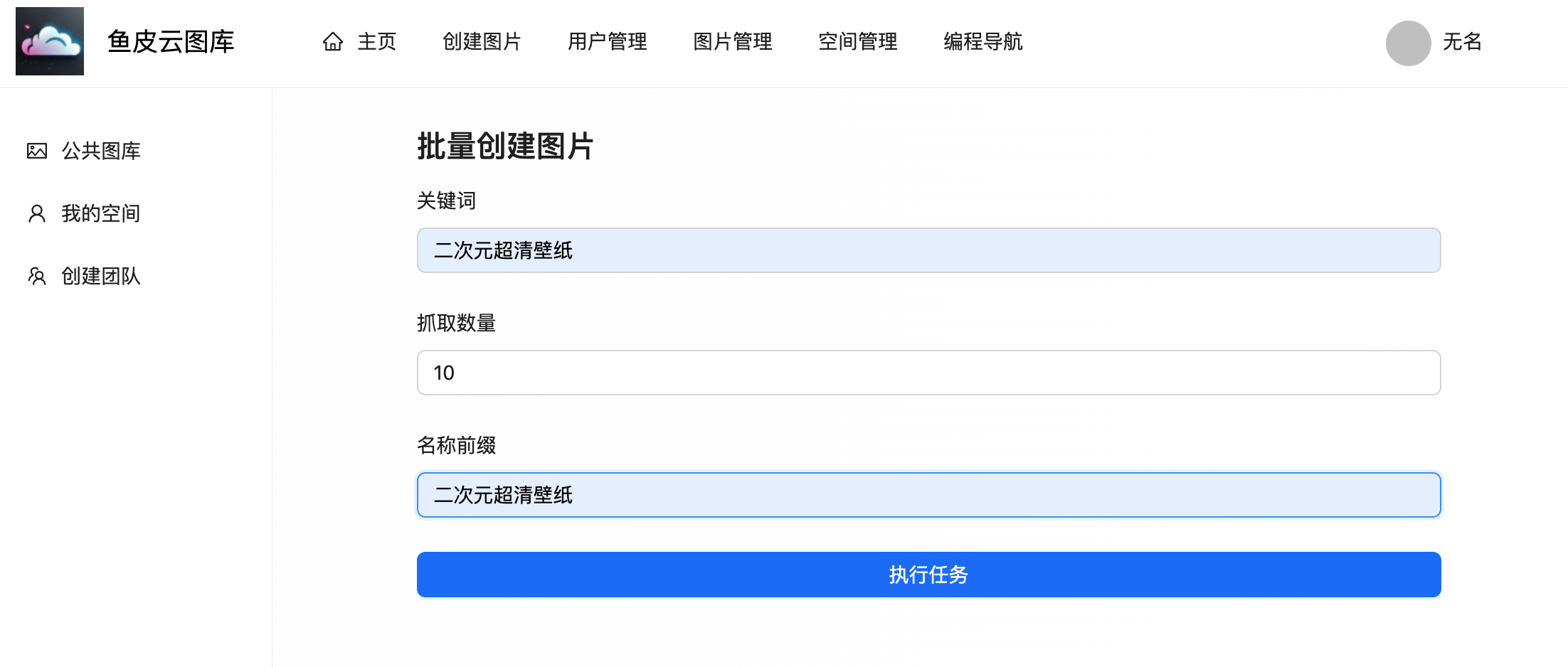 2)进入图片管理 => 批量创建图片页面,抓取一批图片作为网站的初始数据