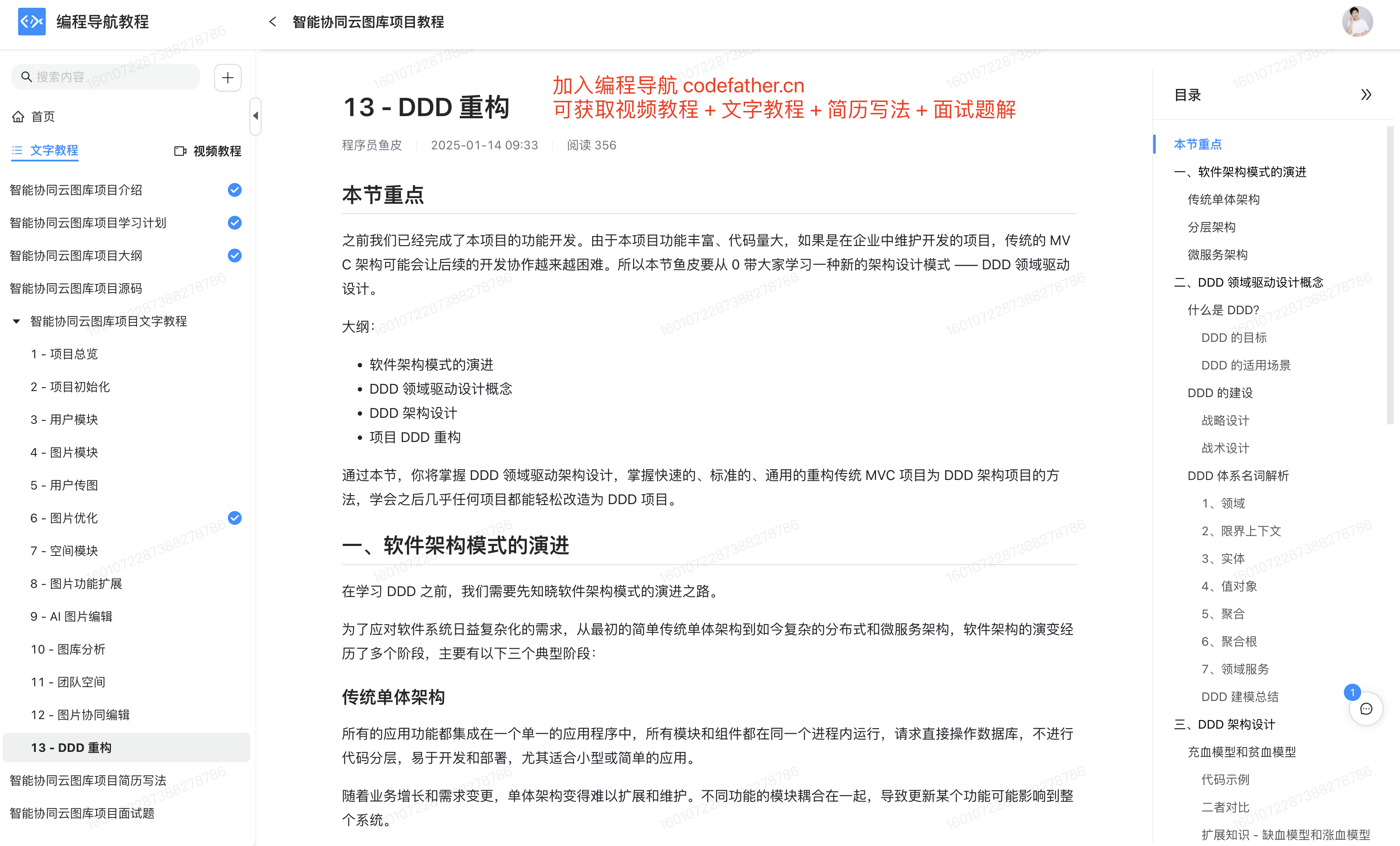 不过虽然代码是开源的,项目的视频教程 + 文字教程 + 简历写法 + 面试题解是仅供 编程导航 的鱼友学习的,毕竟我连续肝了 2 个月嘛。