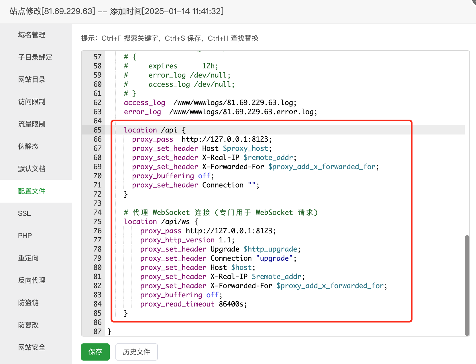 为了提高效率,本项目前端和后端均使用宝塔面板进行部署,可以很方便地管理服务器。