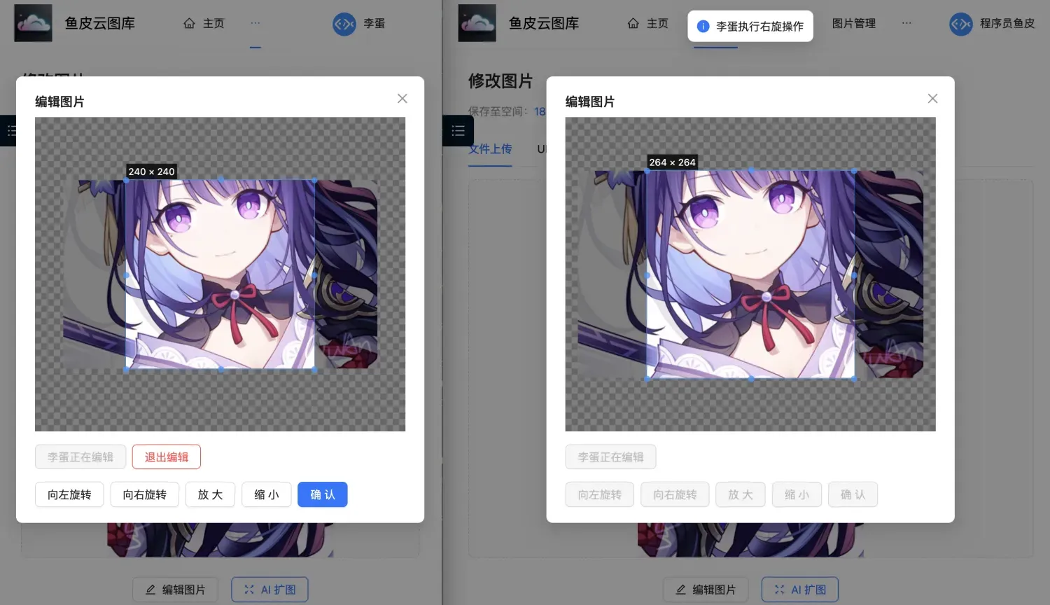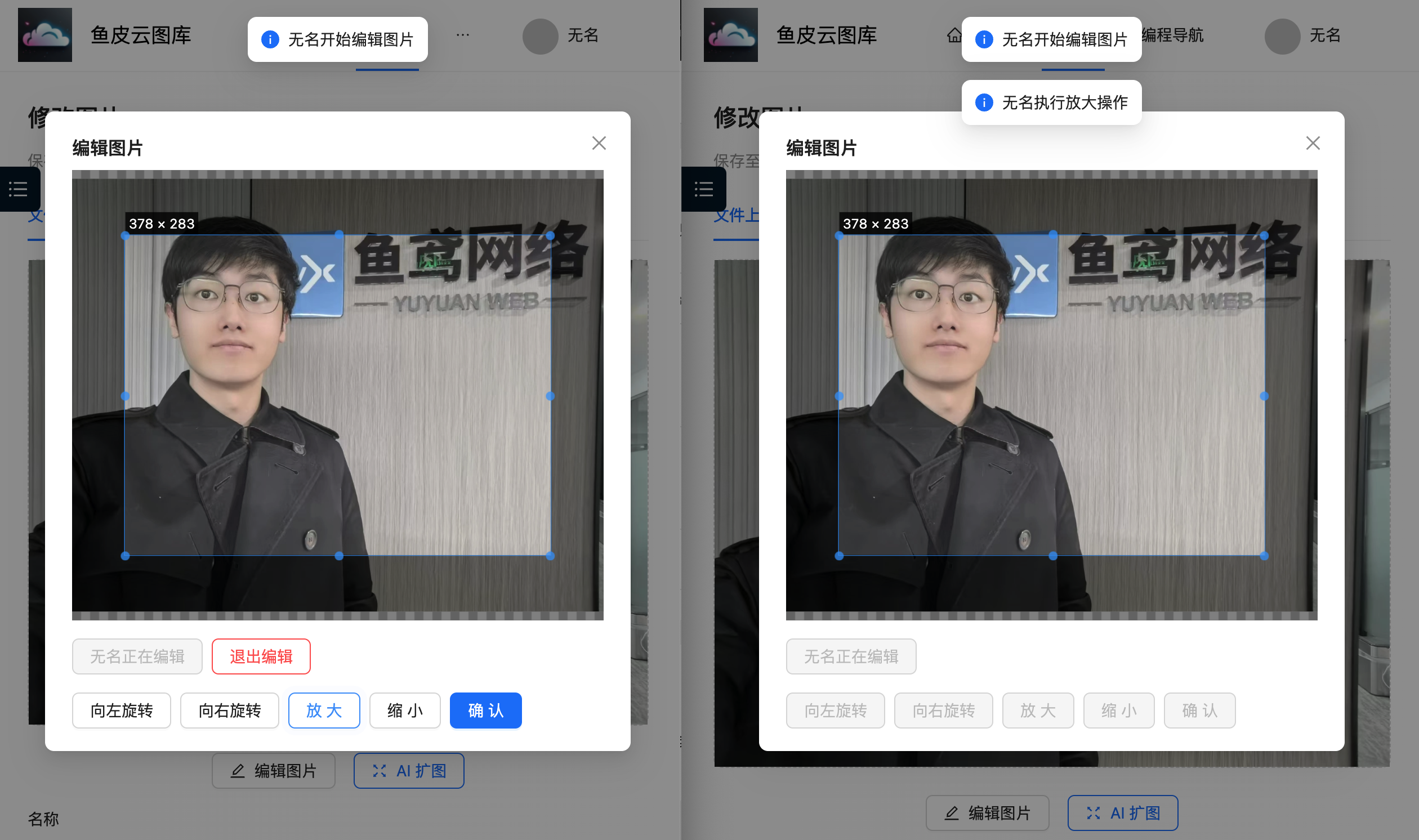10)给团队空间上传一张图片,然后让 2 名成员同时进入编辑: