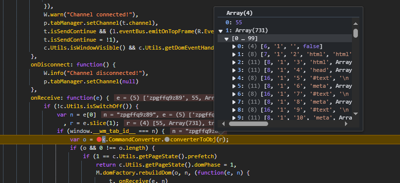这个应该是将数组形式的消息转换为对象形式,这个消息太短了,看不出效果,我们多接收几个消息看一下