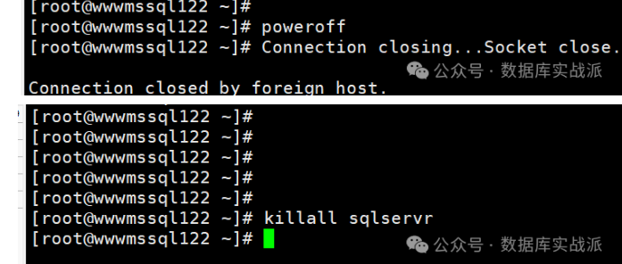 使用poweroff命令直接关机或者killall sqlservr命令来直接停止SQL Server实例进程