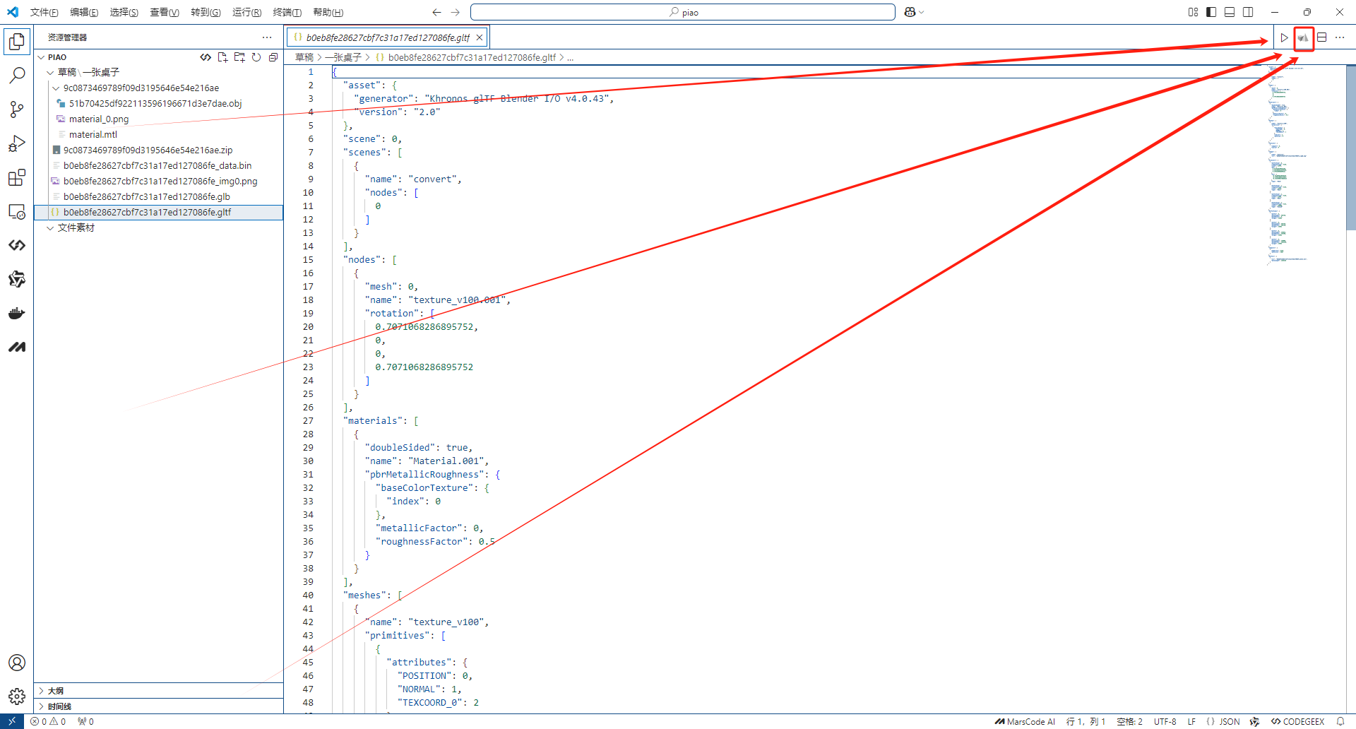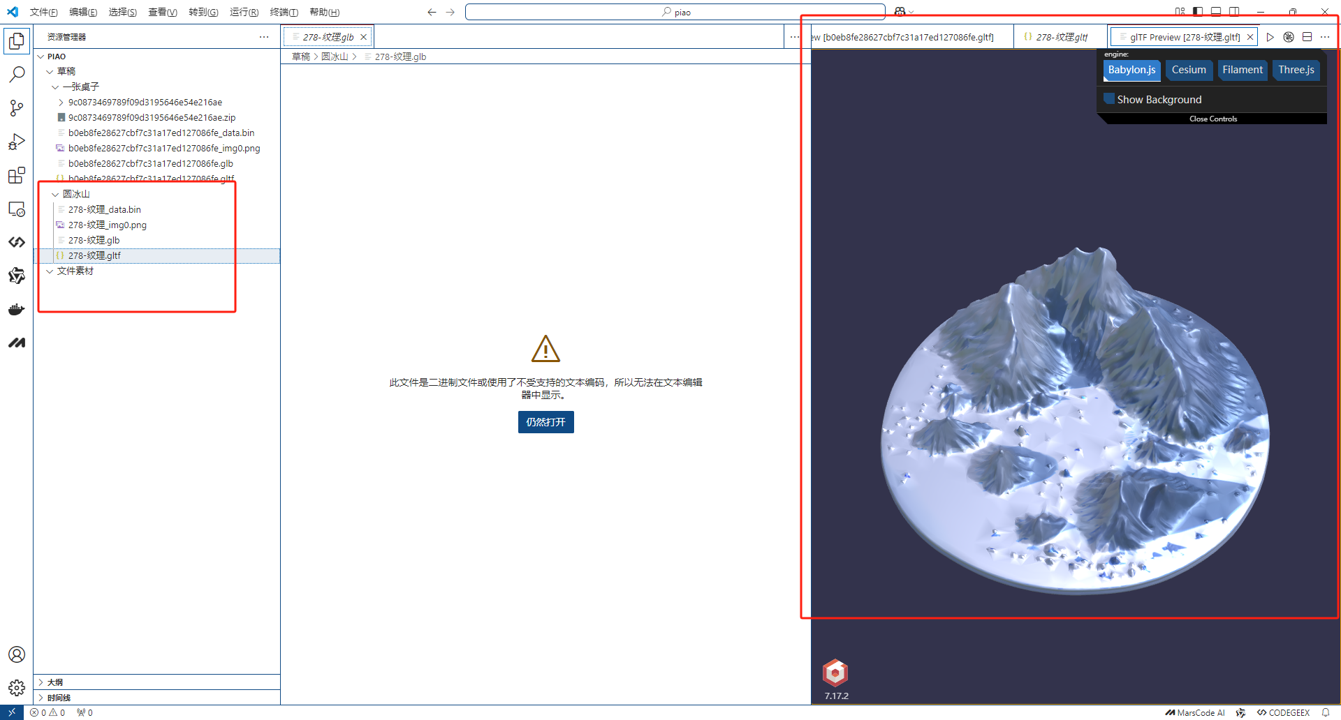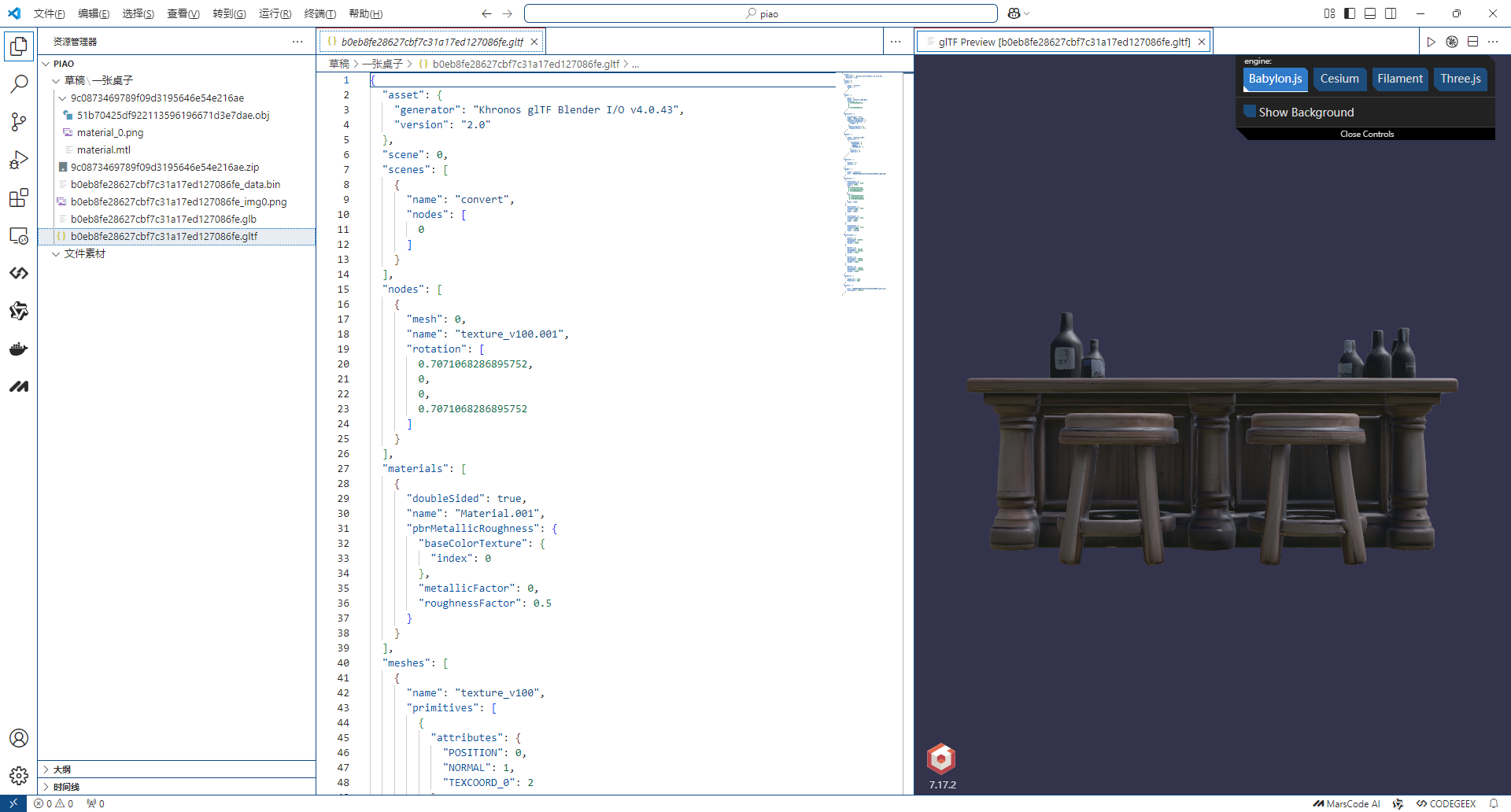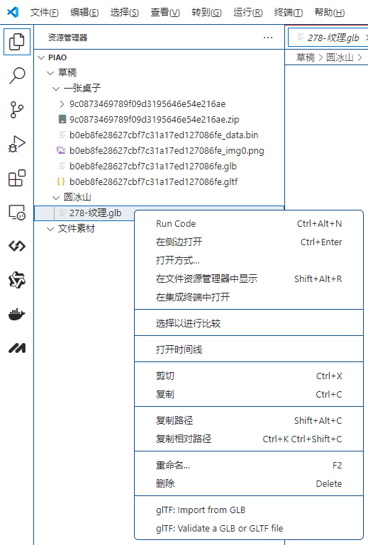 首先我们有一个glb文件,右键它,点击倒数第二行的“glTF: import from GLB”