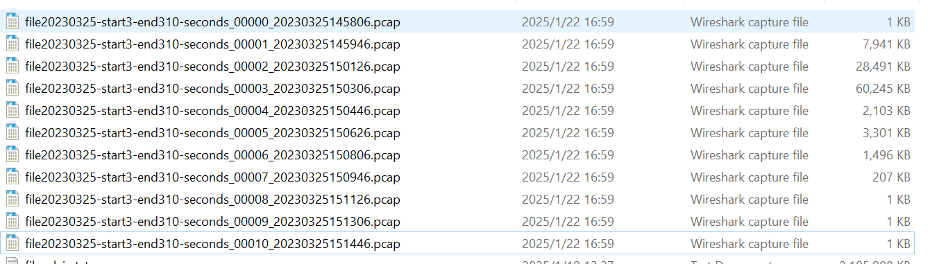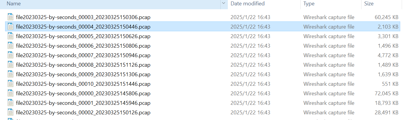 editcap file20230325.pcap -i 100 file20230325-by-seconds.pcap