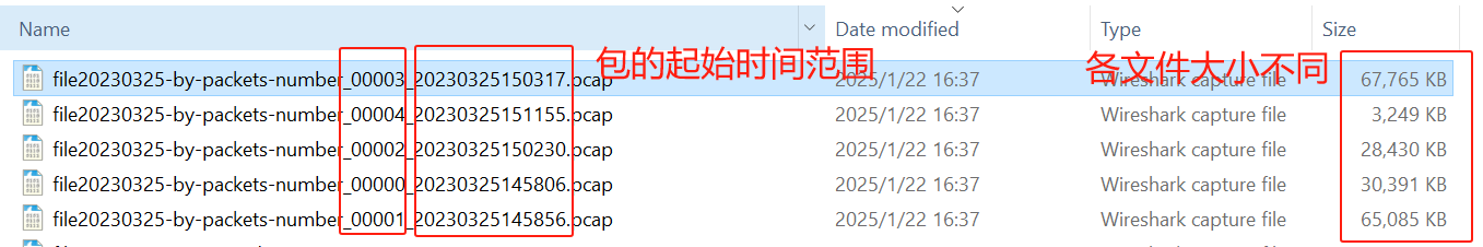 这个就是,本来按照时间范围,只会生成一个包。加了-C后,就继续按包的数量拆分了。