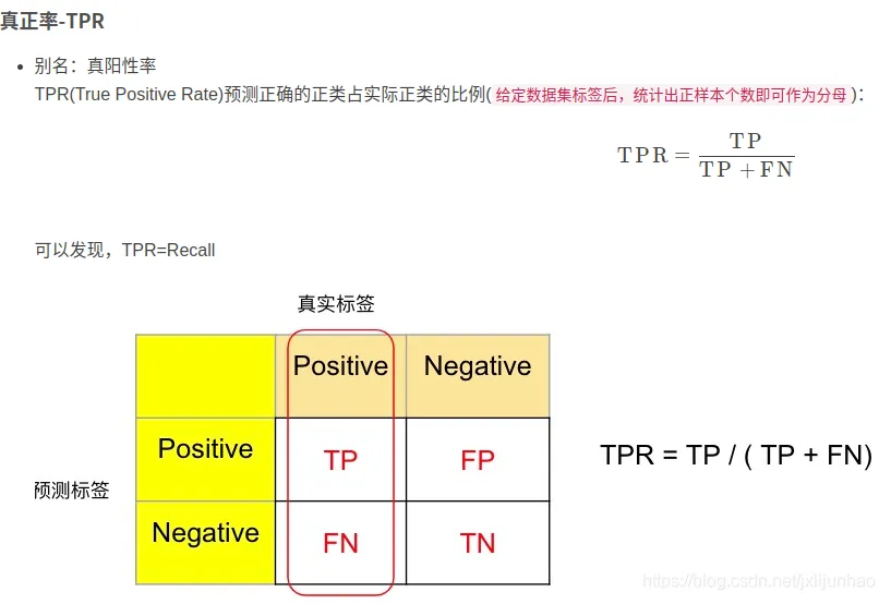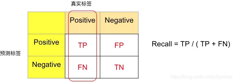 含义:召回率衡量了模型对正样本预测的覆盖程度,即模型预测的全不全,所以也可以叫查全率