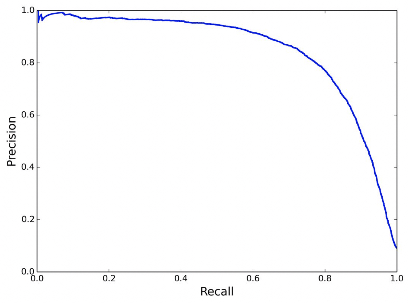 - 最理想的情况便是随着召回率的提升,精确率也逐步保持提升或保持不变,Precision 和 Recall 均接近 1,曲线趋近于左上角。