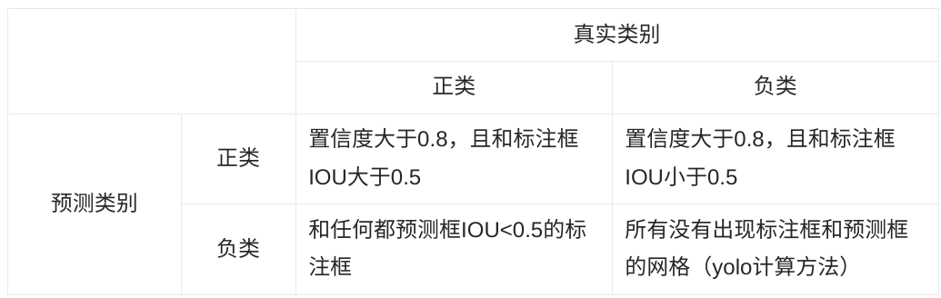 TP:置信度大于0.8,且和标注框IOU大于0.5