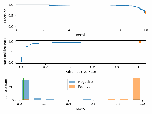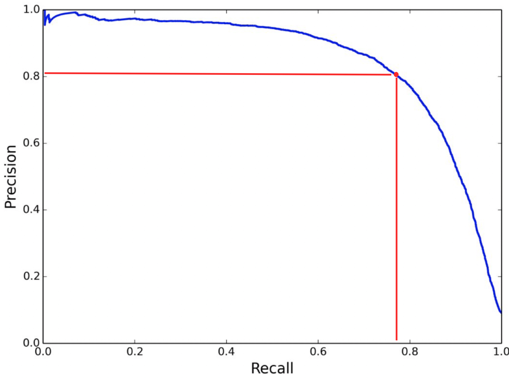 比如下面要求模型输出准确率要超过80%,召回率越高越好,通过曲线就找到这个置信度。