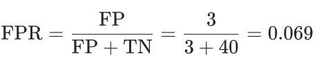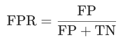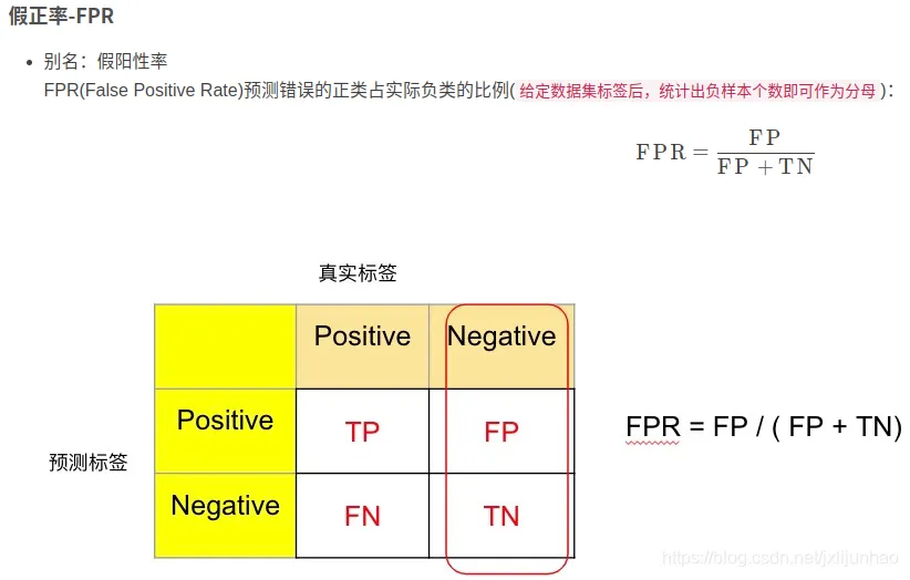 FPR 是基于 TN 和 FP 计算的。公式为: