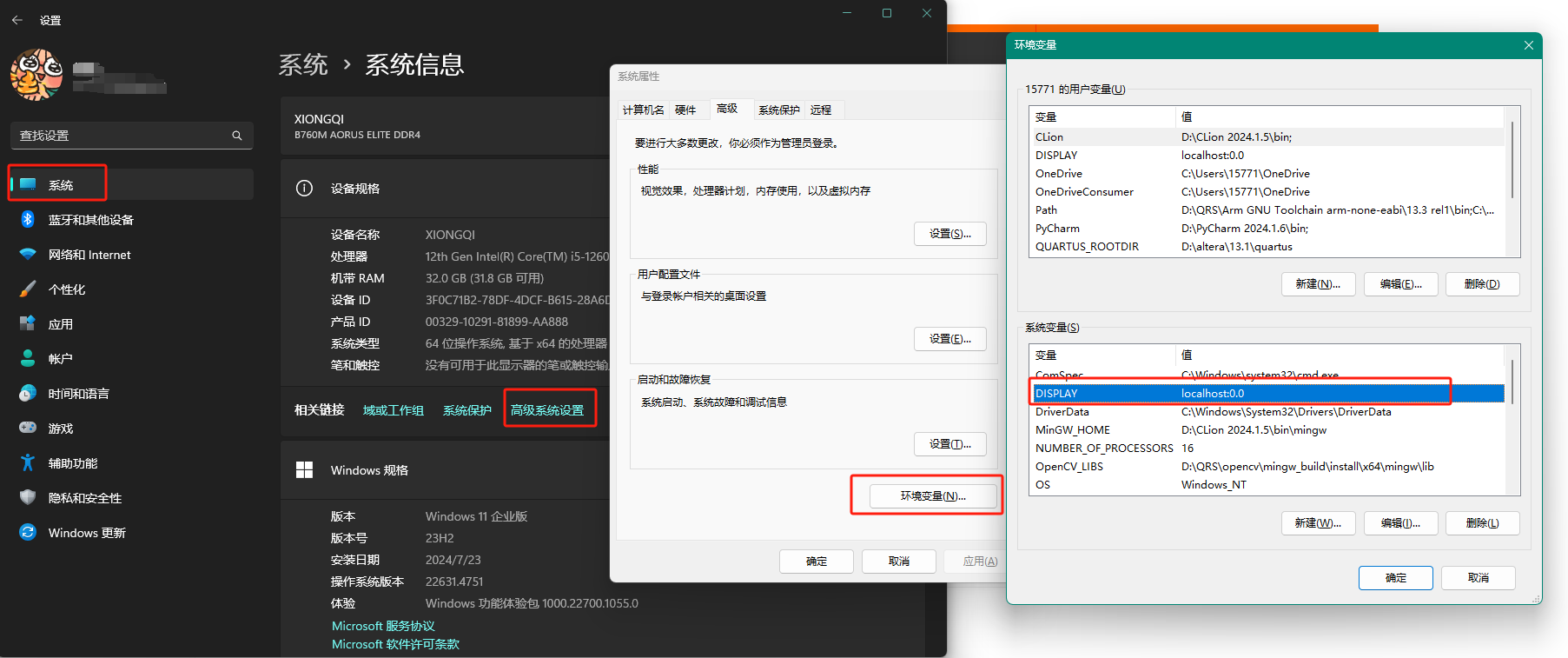 echo $DISPLAY #输入命令,若输出localhost:10.0即代表配置成功