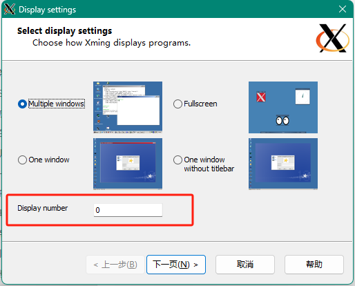然后我们只需要下载后的Xming程序,我们在开始菜单中搜索XLaunch然后点击运行后将Display number设置为0后一直点击下一页直到显示点击完成之后我们便成功启动了X11的服务端,之后我们要使用X11的时候只需要启动这个服务一直在后台挂着就可以啦!!!