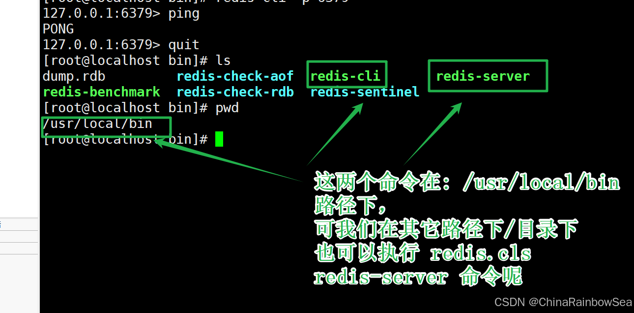 cd /usr/local/bin命令进入到该安装目录当中。[root@localhost redis-6.2.6]# cd /usr/local/bin