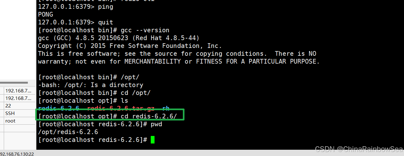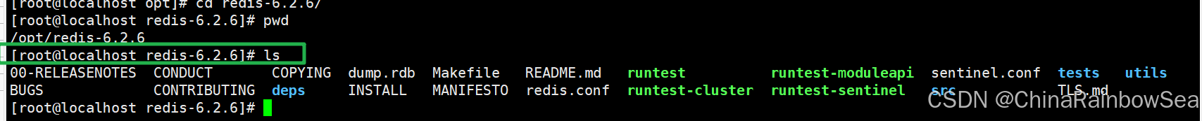 cd redis-6.2.6进入到该目录当中。[root@localhost opt]# cd redis-6.2.6/