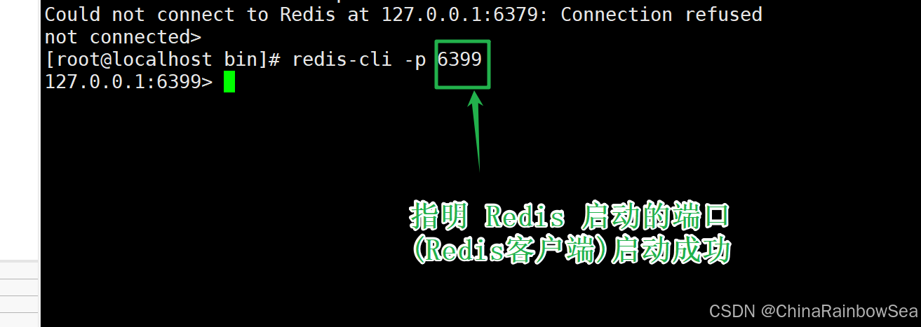 注意:这时候我们的端口就不再是 6379了,而是 6399了,启动 Redis客户端(不是服务器),就必须指明 Redis 端口了,不然是无法启动 Redis 客户端的(同时前提是 Redis 服务器已经启动了才行) 。