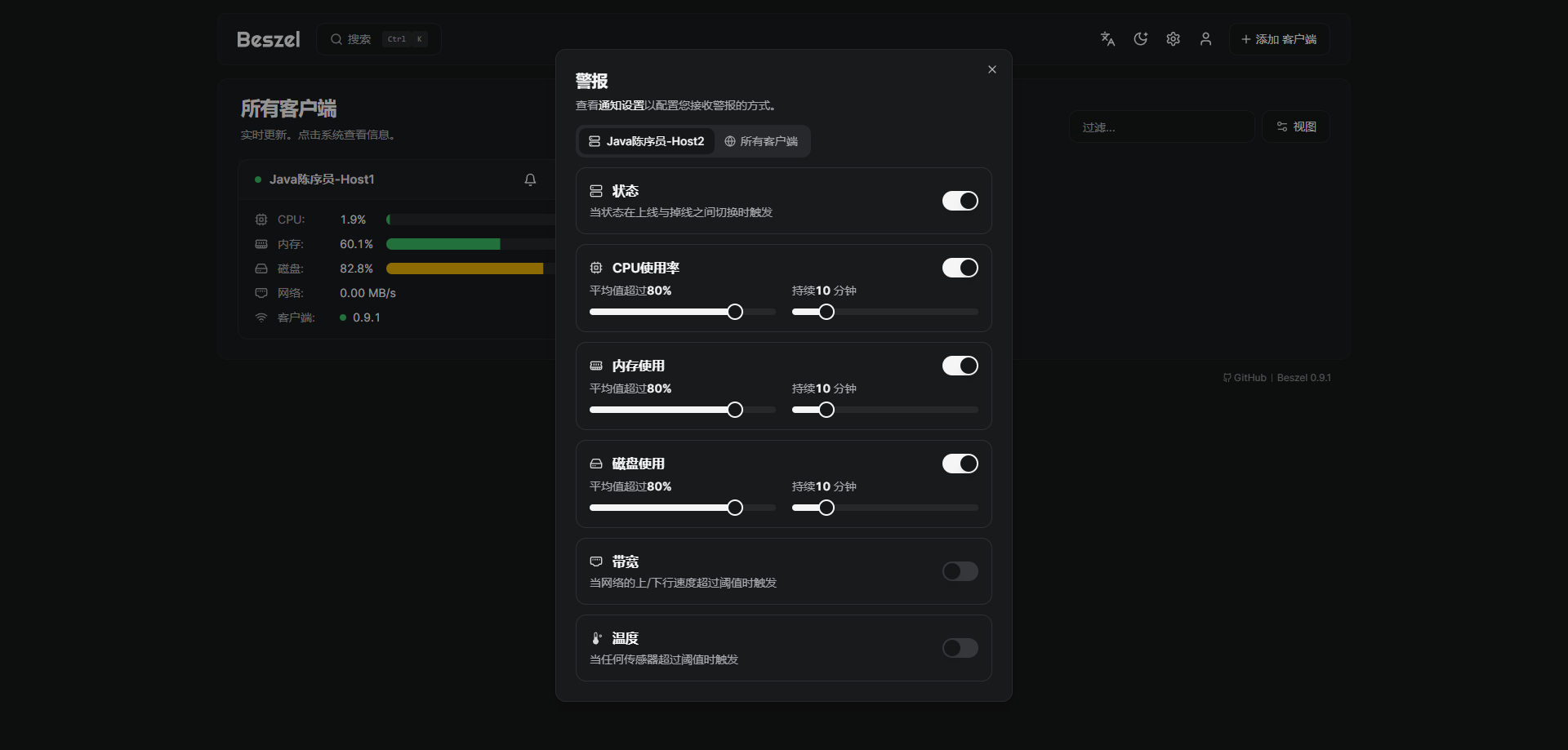 Beszel —— 一个轻量级的服务器监控平台,包括 Docker 统计、历史数据和报警功能。