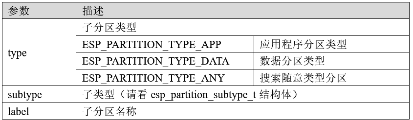 NULL:未找到子分区。esp_partition_t指针:返回子分区。