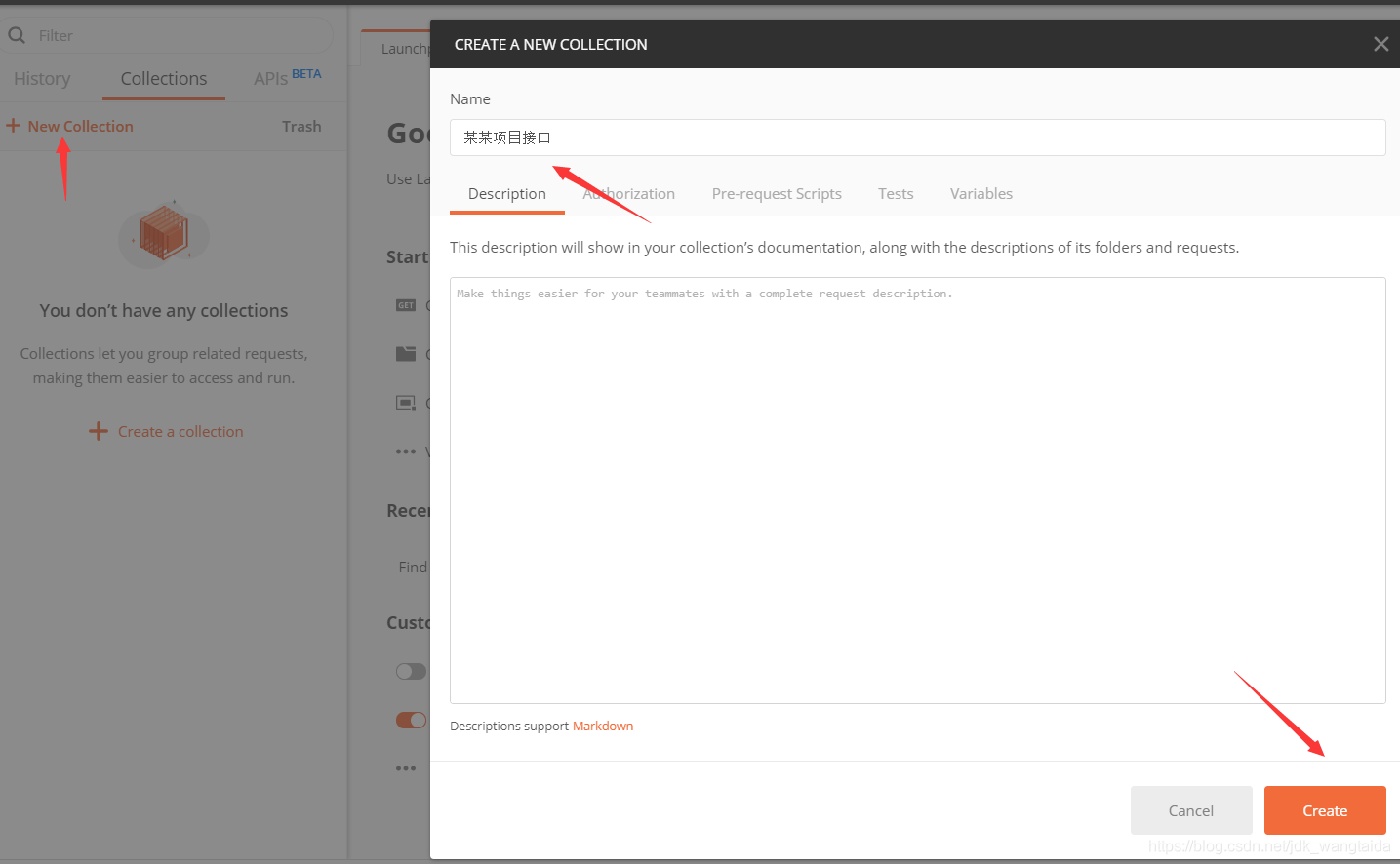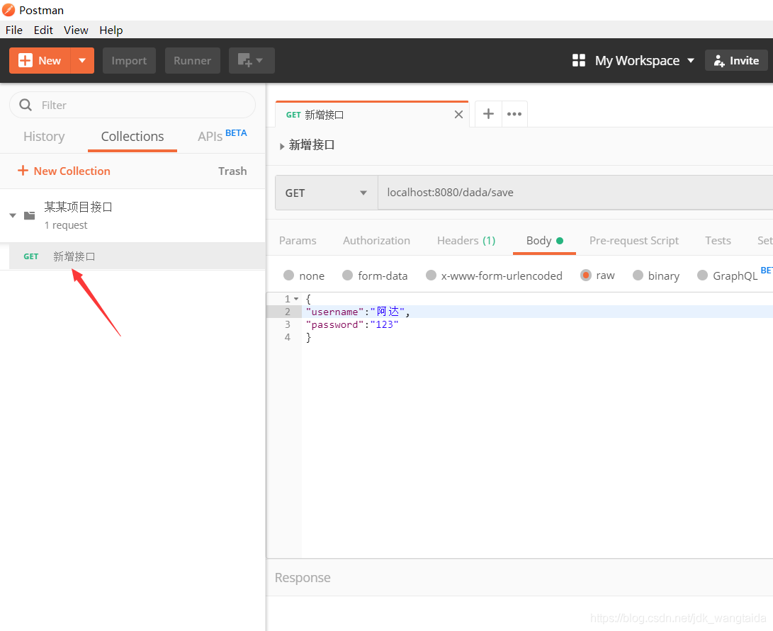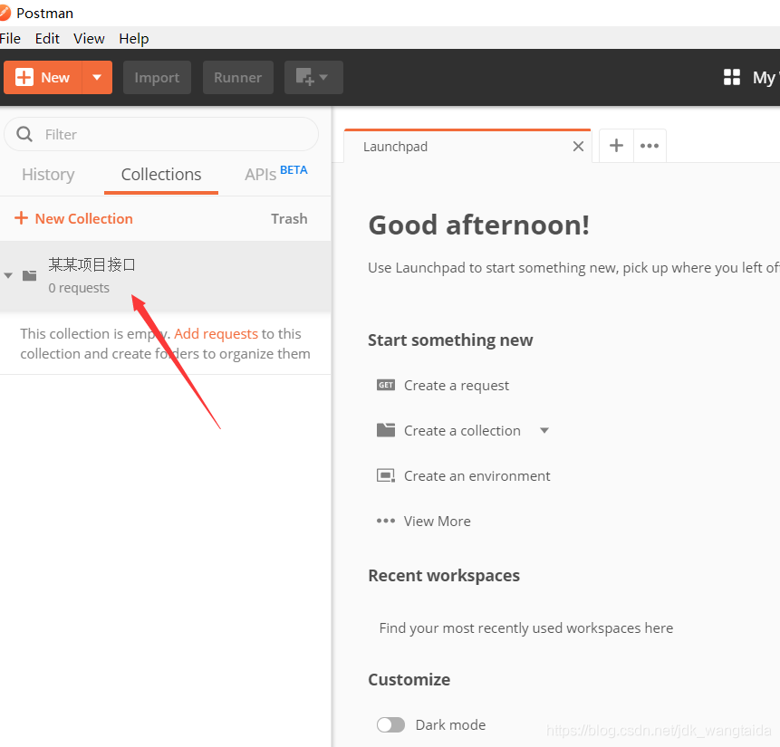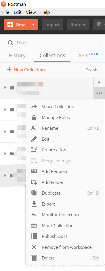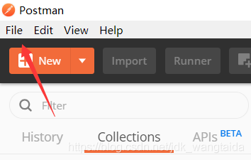 1.选择左边目录的New Collection,新建一个接口文件夹,建完后就会出现在左边的Collections的目录下