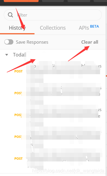 一、如果你遇到新增的接口或者原来的接口变更,然后导出来,让别人倒进去,却发现并有改变,那基本就是缓存在作怪,这时候如果想让同事与自己的postman接口一致,就需要在导出来以前,清楚下历史记录(作用相当于清除postman的缓存)。