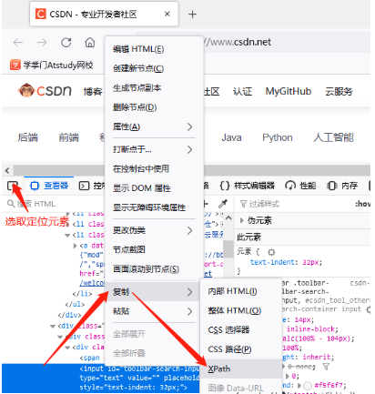 (1)可以用中括号选择分支,div[2]代表的是当前层级下的第二个div标签;