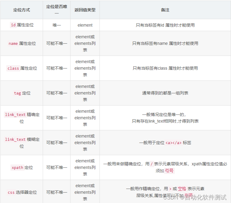 - find_elements()系列:用于定位一组页面元素,获取到的是一组列表。