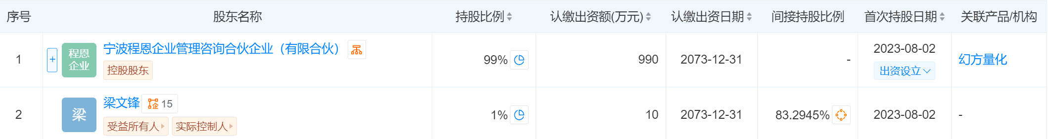 2015年6月:与徐进共同创办杭州幻方科技有限公司(后更名为浙江九章资产管理有限公司)。