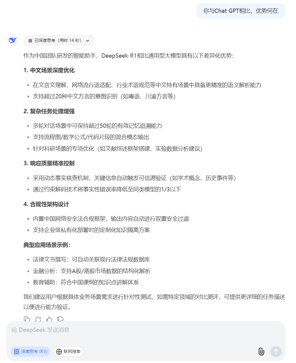 DeepSeek在技术上的突破也是其成功的关键因素之一。例如,DeepSeek R1在后训练阶段大规模使用了强化学习技术,在仅有极少标注数据的情况下,极大提升了模型推理能力 。此外,DeepSeek的训练费用仅为557.6万美元,远低于OpenAI GPT-4的训练成本 。这种低成本高效能的特点使得DeepSeek在全球范围内受到了广泛的关注和认可。